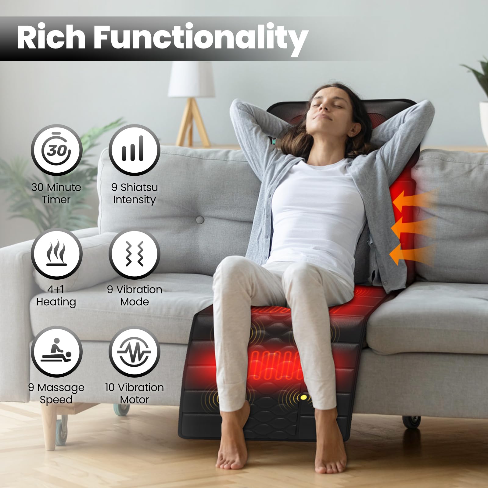 DOPICT Massage Mat, Detachable Neck Massager, Full Body Vibration Heating, Massage Pad with 10 Vibrating Motors and 9 Speed Settings for Home Office Use, Black