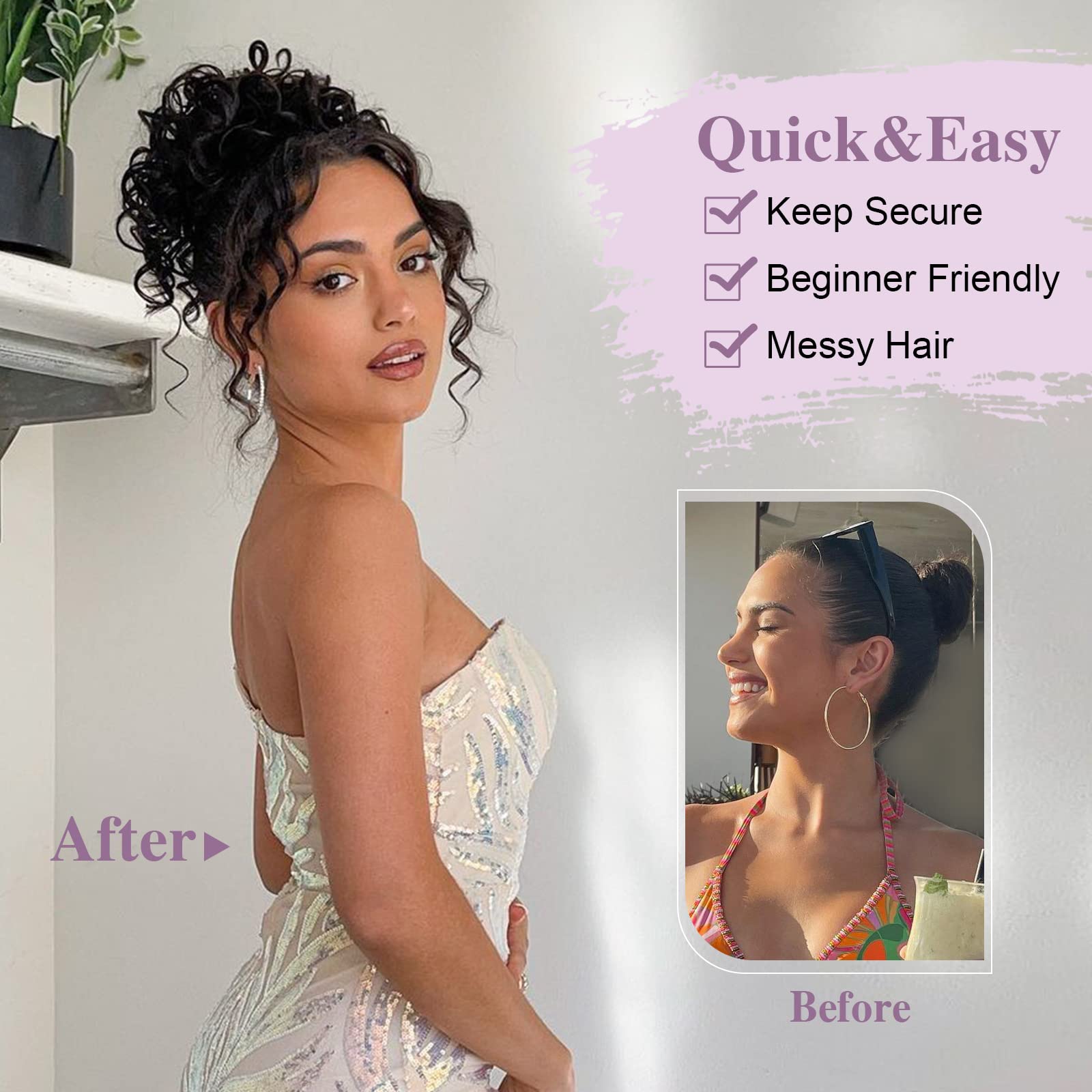 - Unique Design: This ponytail extension shows different curvatures and can be worn in two ways, one way can be worn as a low ponytail, which is more natural; and another way can be used as a high bun, the few strands of hair left to give you more charm.