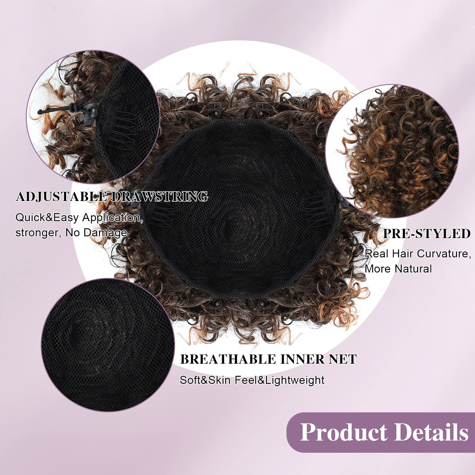 - Easy To Wear: drawstring ponytail, which you can easily wear on your hair bun. Just put your own hair into a bun, Attach the ponytail extension piece with a drawstring and combs.