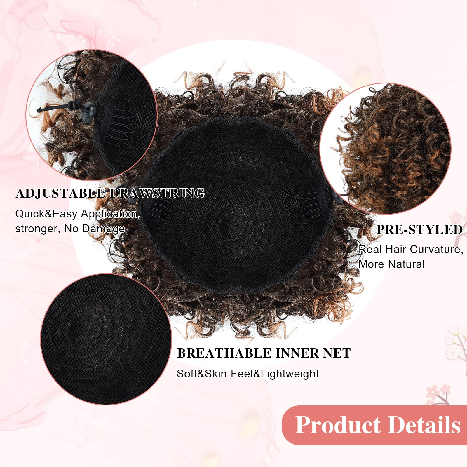 DOROJJ Curly Hair Buns for Women Drawstring Curly Ponytail for Black Women Messy Curly Bun Hair pieces Ponytail Short Messy Curly Bun Hair pieces for Women Daily Use(Chestnut Brown)
