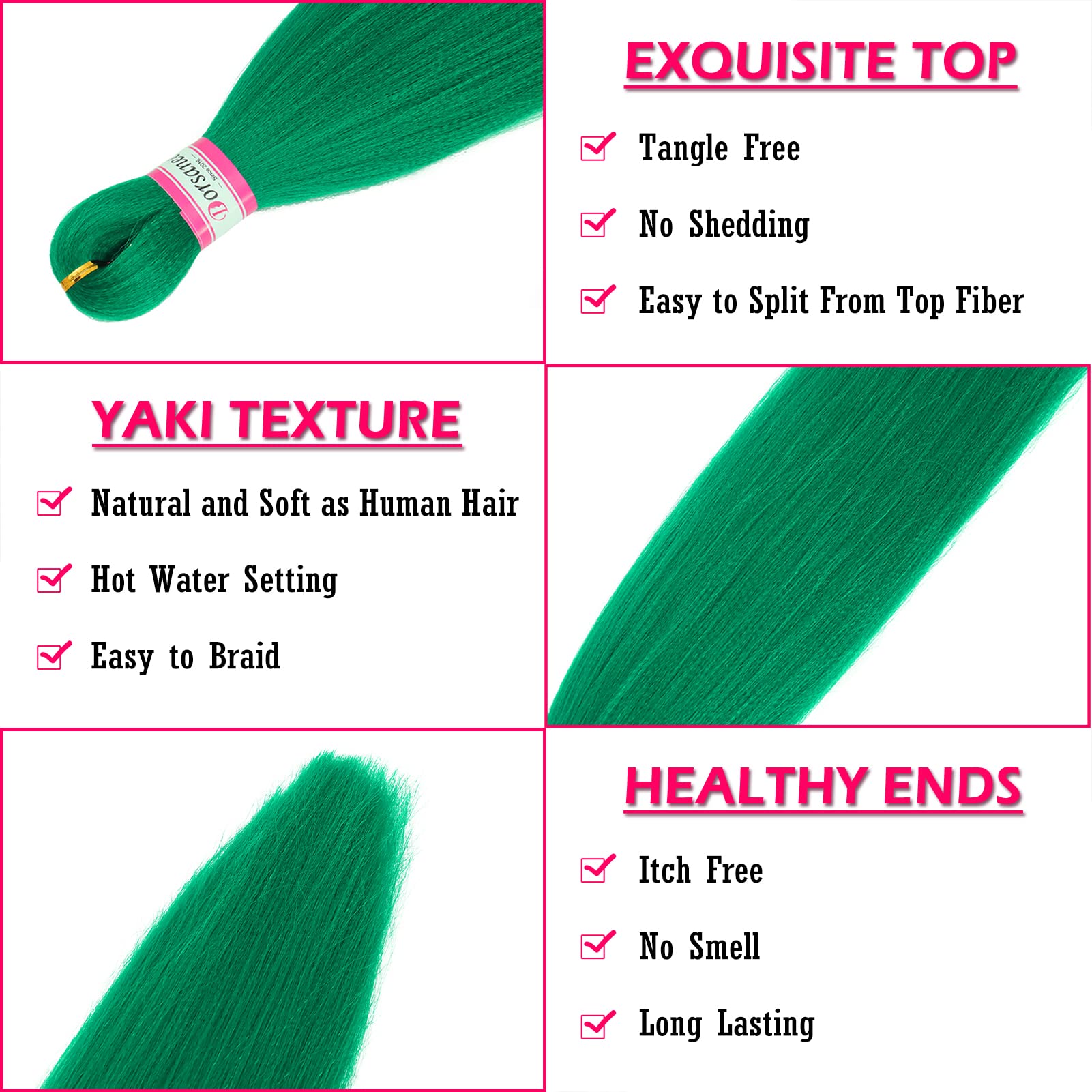 Dorsanee Green Braiding Hair Pre Stretched 20 Inch 3 Packs Professional Easy Braiding Hair for Crochet Braids Twists Locs Hair Soft Yaki Texture Hot Water Setting Synthetic Hair Extensions