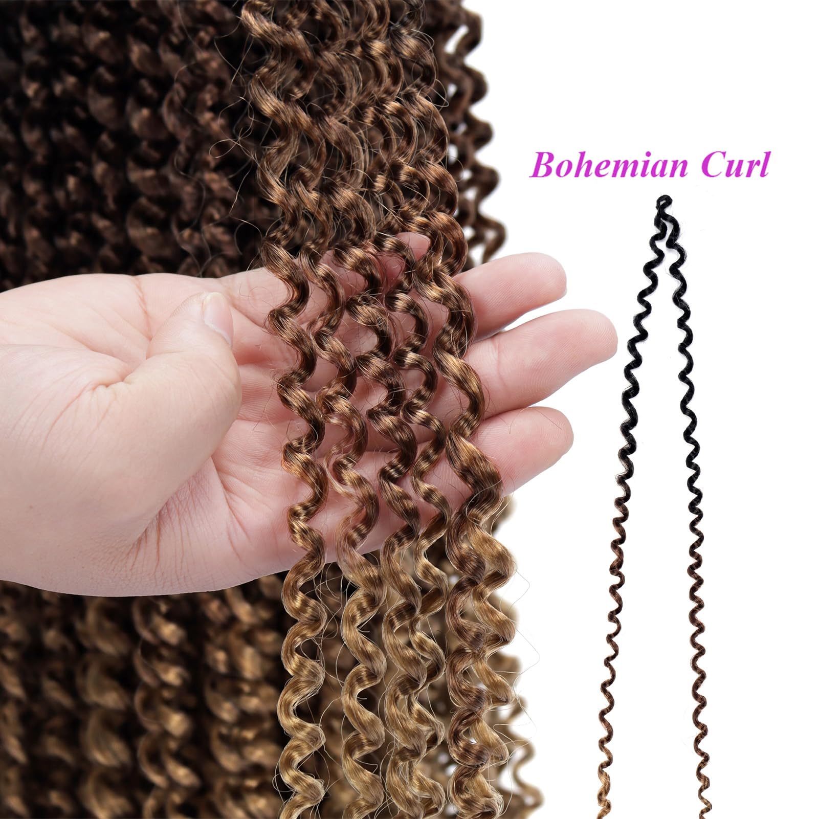 Dorsanee Ombre Brown Passion Twist Hair 18 Inch 7 Packs Water Wave Crochet Hair Long Bohemian Curly Braiding Hair for Butterfly Locs, Faux Locs, Boho Style Spring Twist Crochet Braids (1B/30/27#)