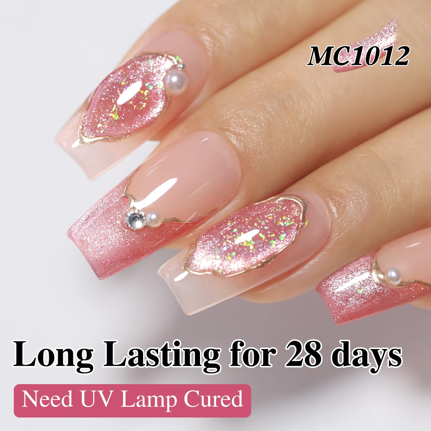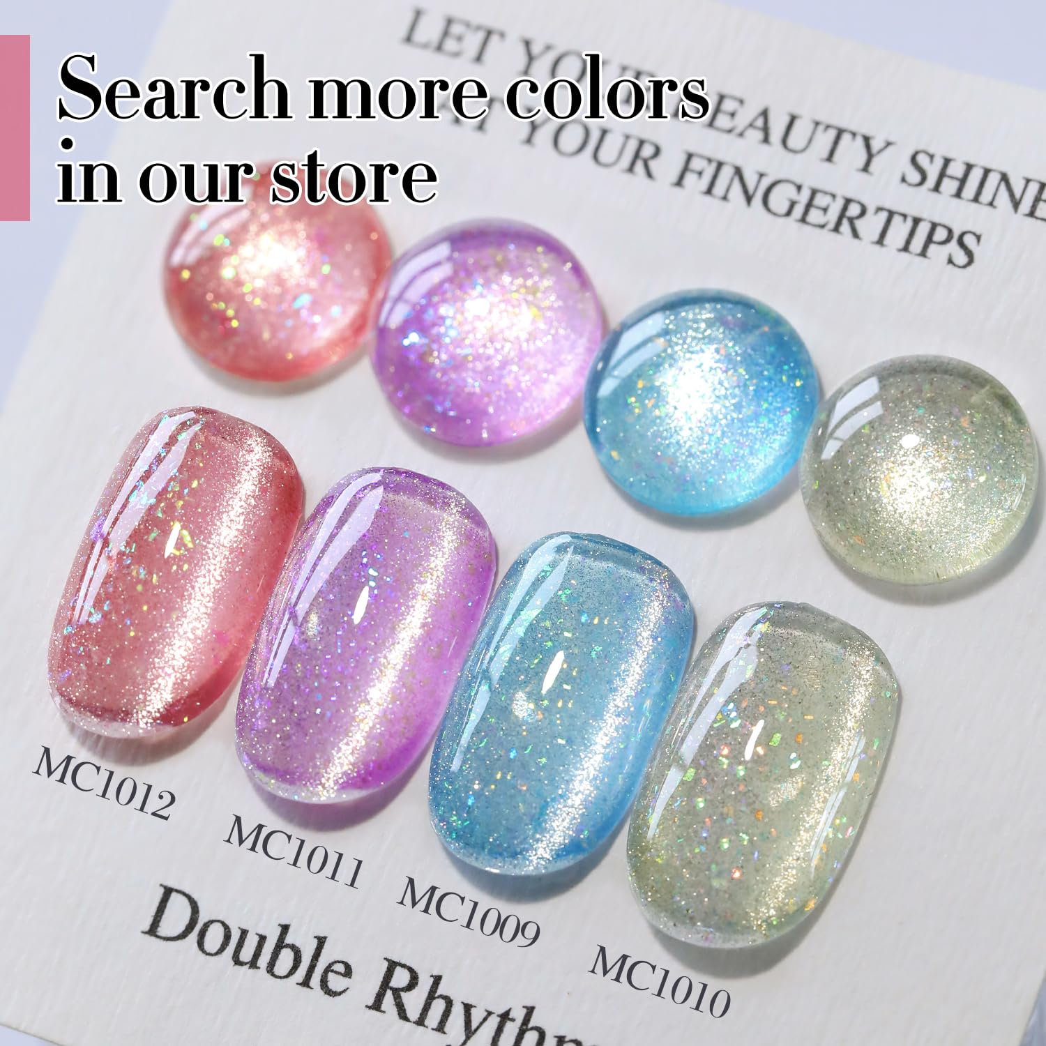 Double Rhythm 0.5 OZ Cat Eye Gel Polish with Magnet 15ML Holographic Glitter Shimmer Translucent Jelly Color Magnetic Nail Polish Salon DIY at Home (MC1012)