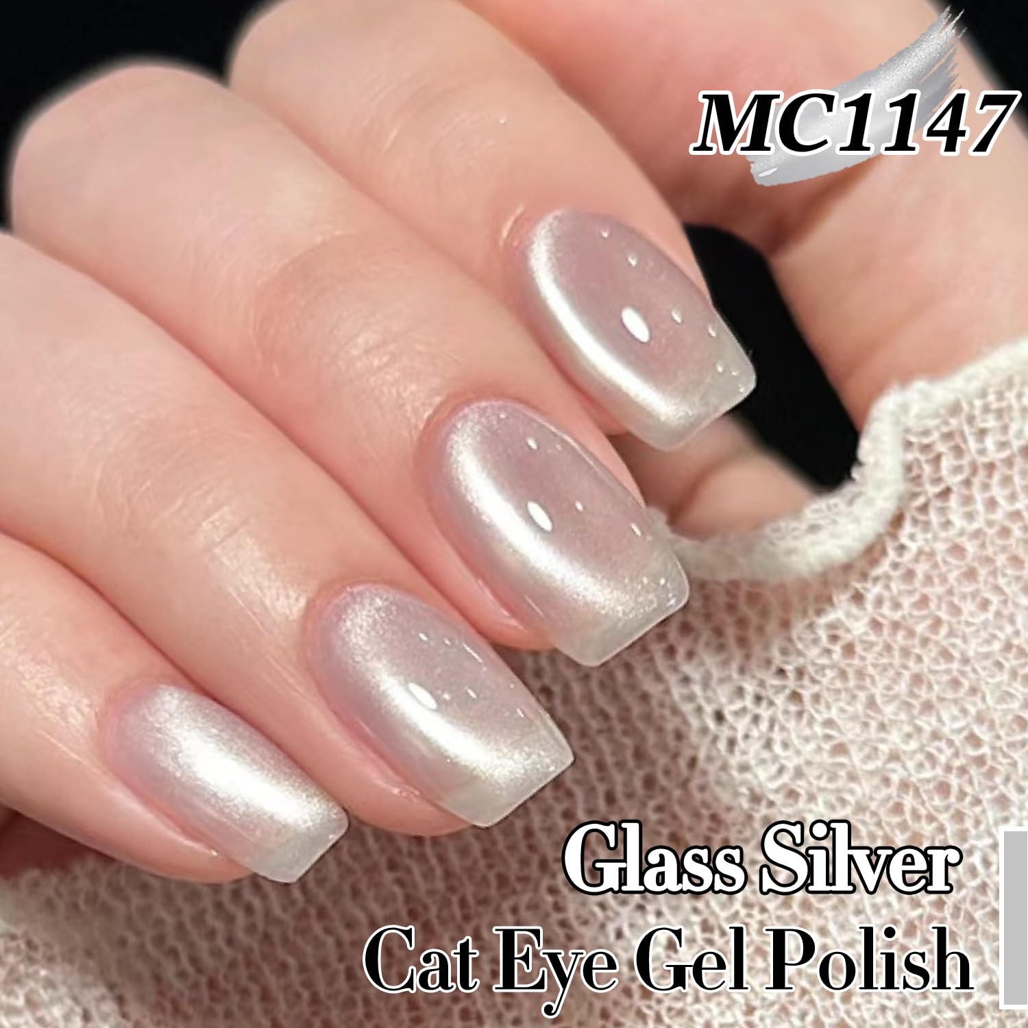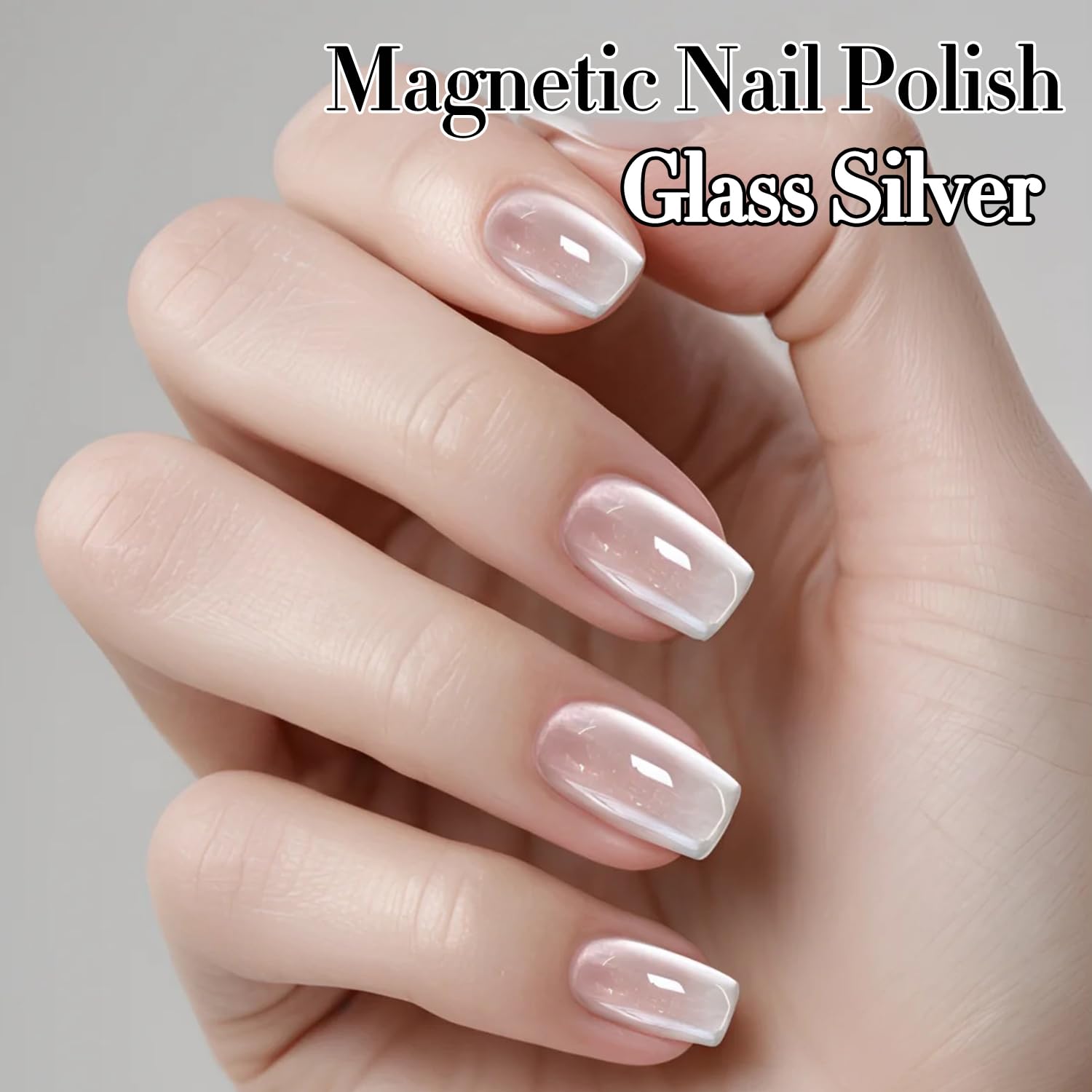 Double Rhythm 15ML Glass Cat Eye Gel Polish with Magnet Same Color Same Bottle Holographic Glitter Shimmer Salon Soak Off Magnetic Nail at Home (Clear Silver-MC1147)