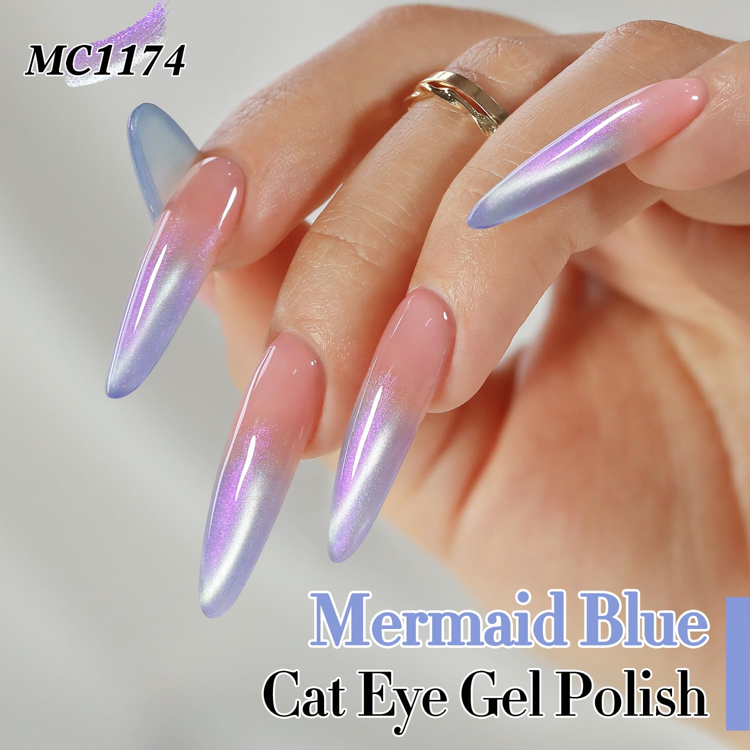 Double Rhythm 15ML Glass Cat Eye Gel Polish with Magnet Same Color Same Bottle Holographic Glitter Shimmer Salon Soak Off Magnetic Nail at Home (Mermaid Blue-MC1174)
