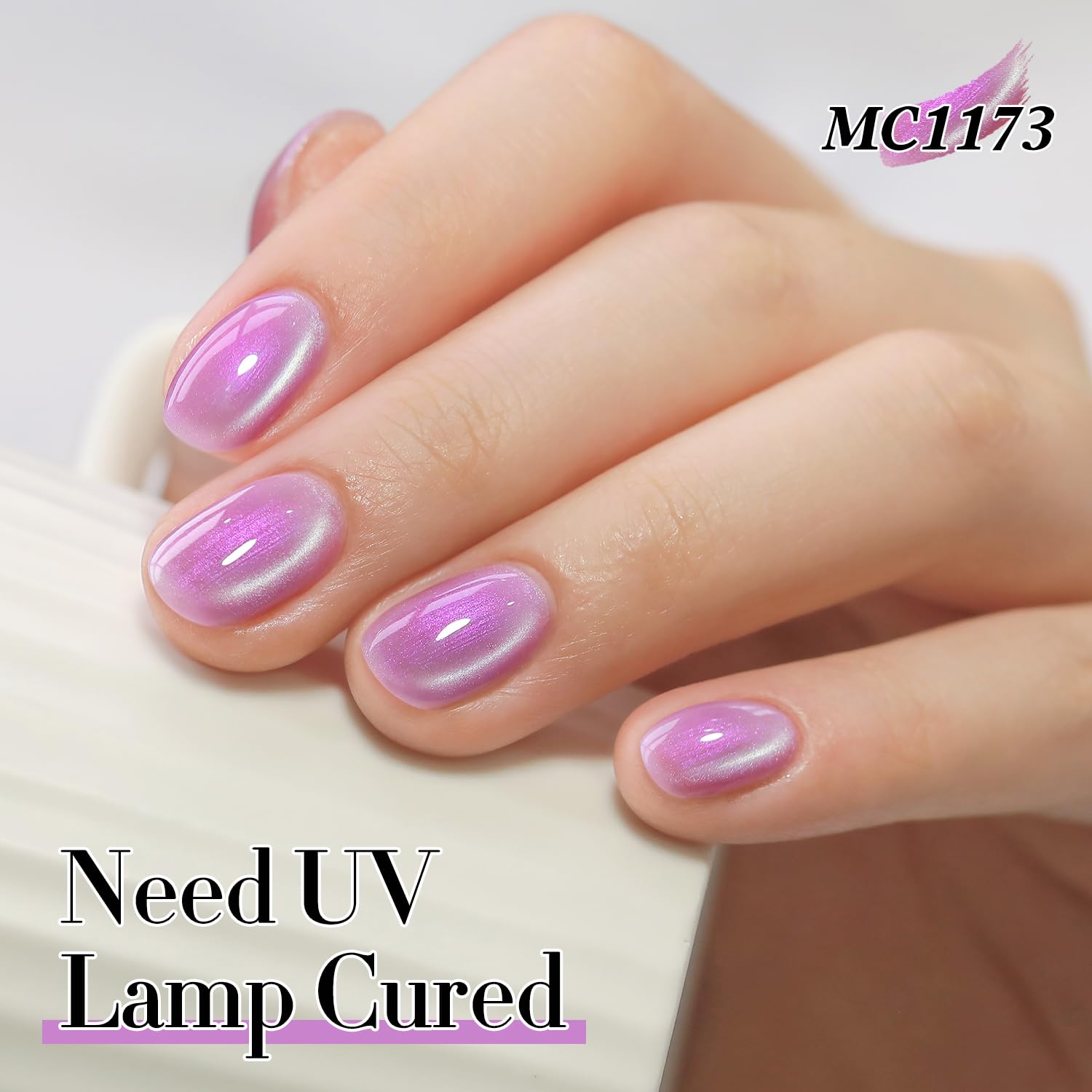 Double Rhythm 15ML Glass Cat Eye Gel Polish with Magnet Same Color Same Bottle Holographic Glitter Shimmer Salon Soak Off Magnetic Nail at Home (Mermaid Purple-MC1173)