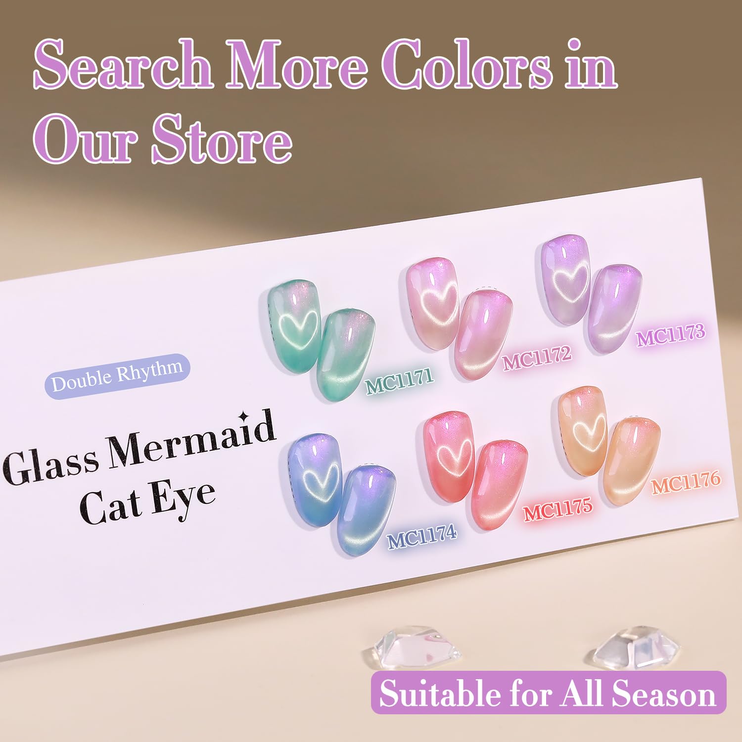 - Same Color Same Bottle Cat Eye Gel Nail Polish : Double Rhythm cat eye gel nail polish kit includes 1 color 15ml / 0.5 fl.oz gel nail polish. The cat eye gel can be combined with different bacse colors arbitrarily, you can get different colors nail art.You can use different base coat to creat different sytles.