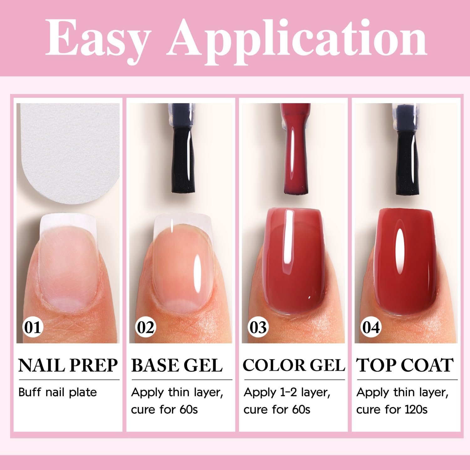 - 28+DAYS LONG LASTING: Gel nail polish is super easy to apply even for the beginner, the effect lasts long for 28+ days and brings you high gloss shine under proper application. You will have a beautiful and long-lasting manicure style. No worry about your beloved nails design will peel off easily.