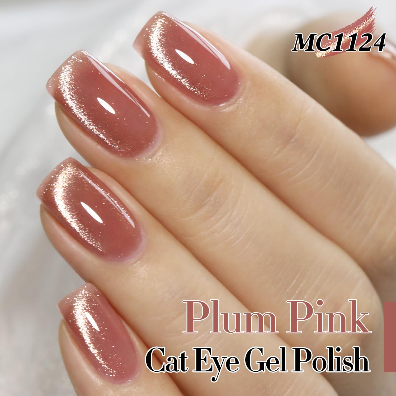 Double Rhythm 15ML Ice Glass Cat Eye Gel Polish with Magnet Holographic Glitter Shimmer Translucent Sheer Color Salon Soak Off Magnetic Nail at Home (Plum Purple-MC1124)