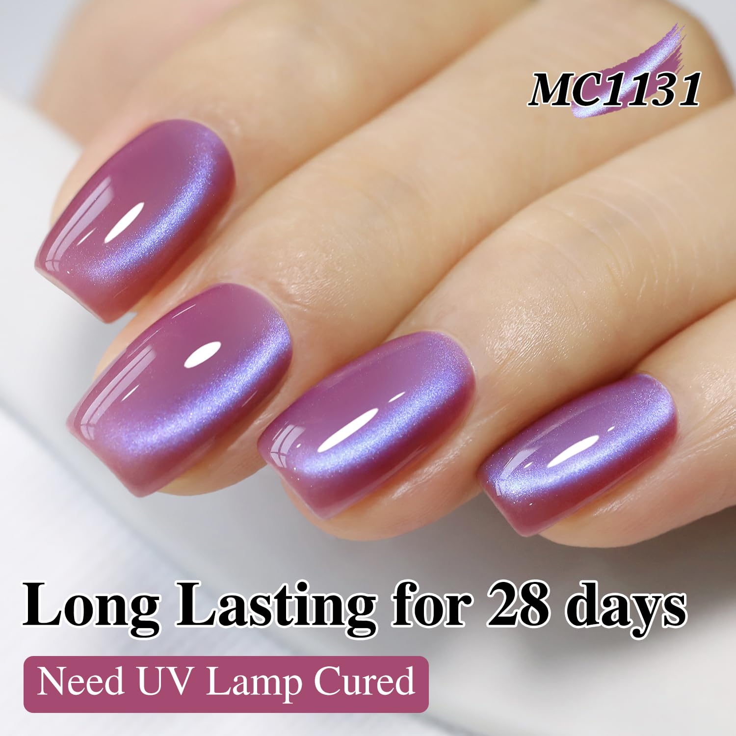 Double Rhythm 15ML Ice Glass Cat Eye Gel Polish with Magnet Holographic Glitter Shimmer Translucent Sheer Color Salon Soak Off Magnetic Nail at Home (Rose Violet-MC1131)