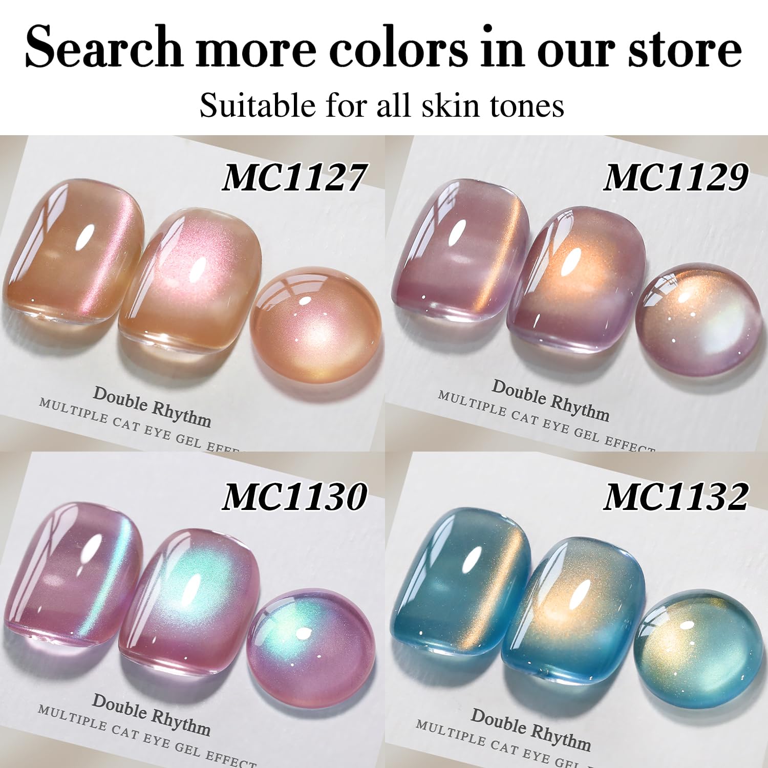 - Cat Eye Gel Nail Polish : Double Rhythm cat eye gel nail polish kit includes 1 color 15ml / 0.5 fl.oz gel nail polish. The cat eye gel can be combined with different bacse colors arbitrarily, you can get different colors nail art.You can use different base coat to creat different sytles.