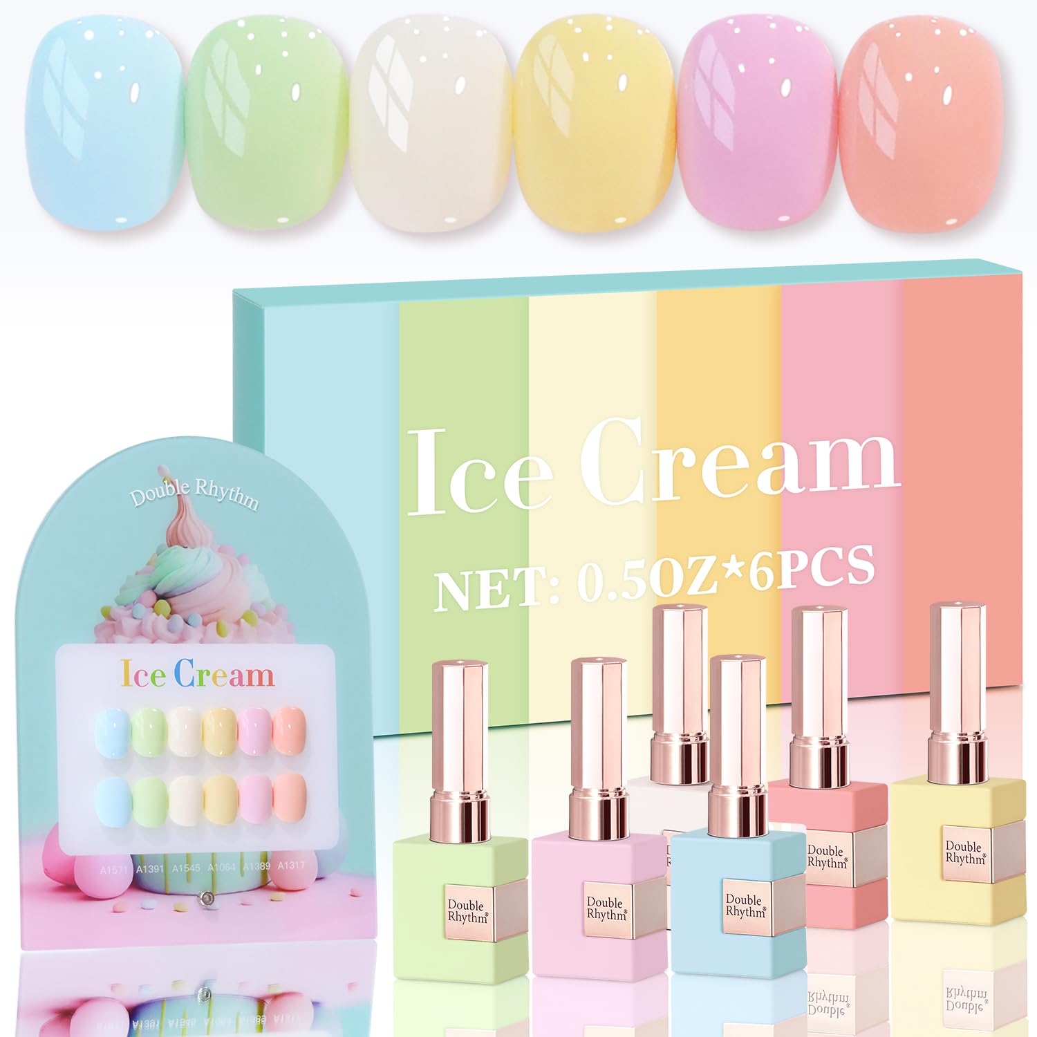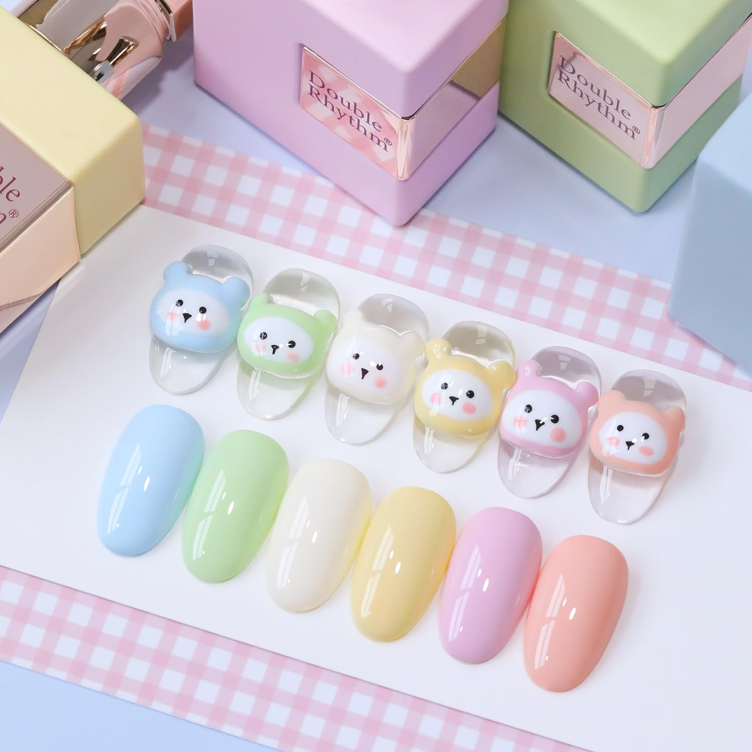 Double Rhythm 6 Pcs 15 ML Gel Polish Set Same Color Same Bottle Soak Off Gel Polish Kit Nail Art Manicure Salon DIY at Home for Women (Blue Green Beige Yellow Pink Orange-T6-9)