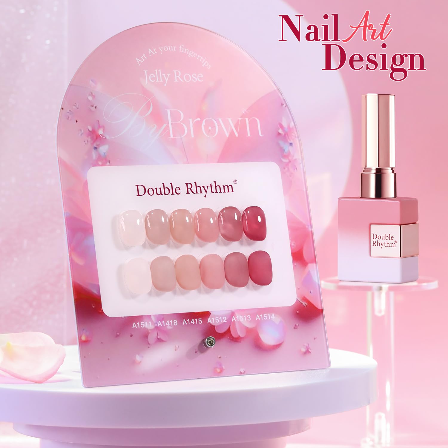 Double Rhythm 6 Pcs 15 ML Gel Polish Set Same Color Same Bottle Soak Off Gel Polish Kit Nail Art Manicure Salon DIY at Home for Women (Jelly Translucent Rose Pink Burgundy Red-T6-2)