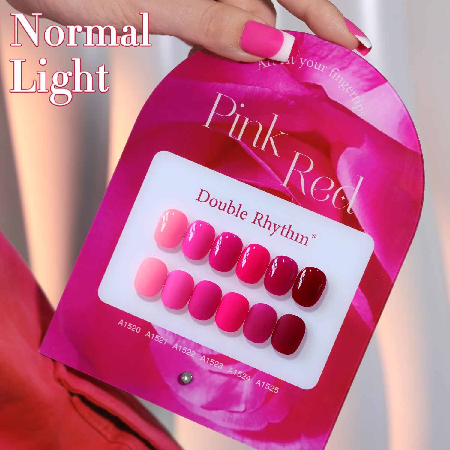 Double Rhythm 6 Pcs 15 ML Gel Polish Set Same Color Same Bottle Soak Off Gel Polish Kit Nail Art Manicure Salon DIY at Home for Women (Neon Light Pink Purple Burgundy Red-T6-8)