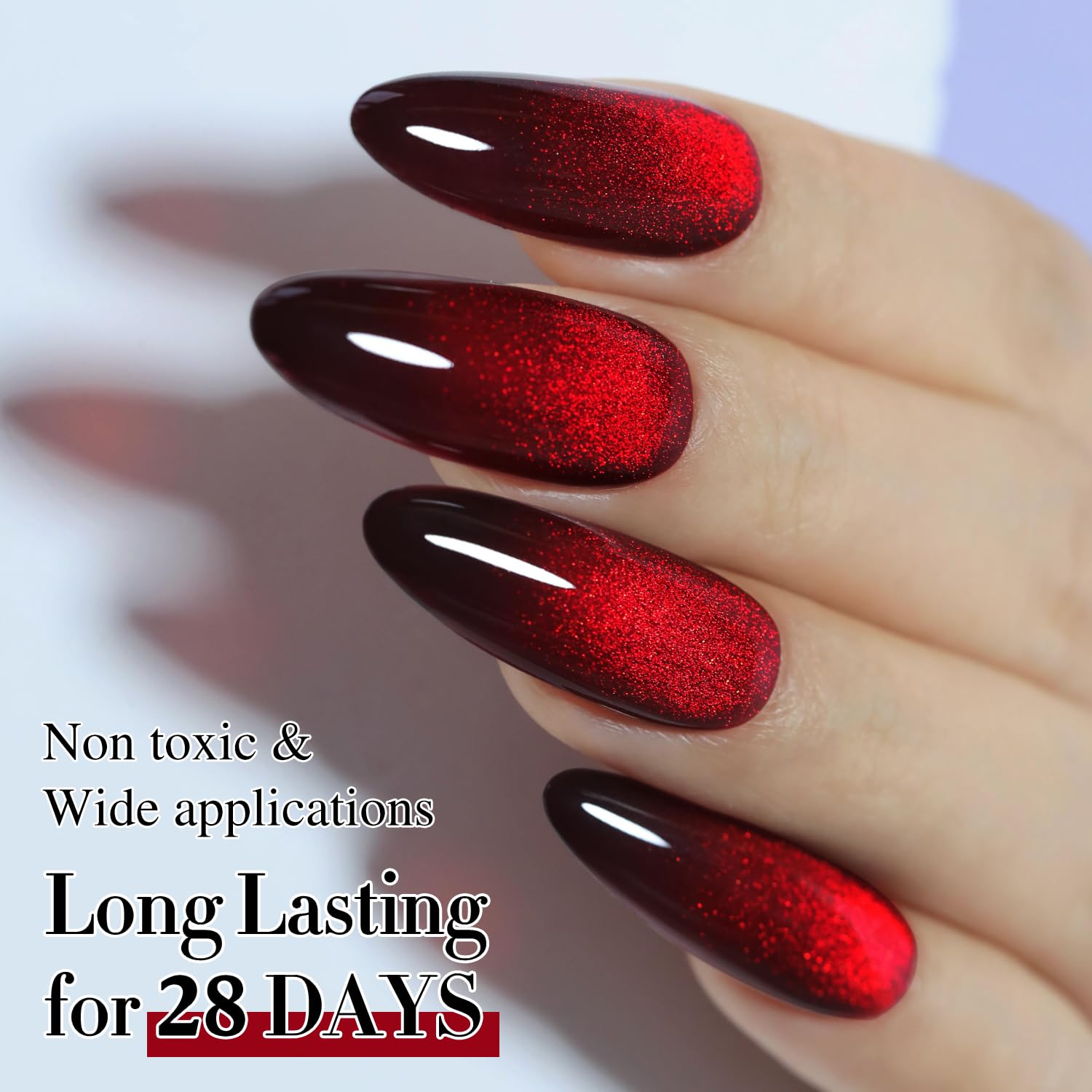 Double Rhythm Jelly Glass Cat Eye Gel Polish with Magnet 15ML Holographic Glitter Shimmer Translucent Sheer Color Magnetic Nail Polish Salon DIY at Home (Blood Red-MC1107)
