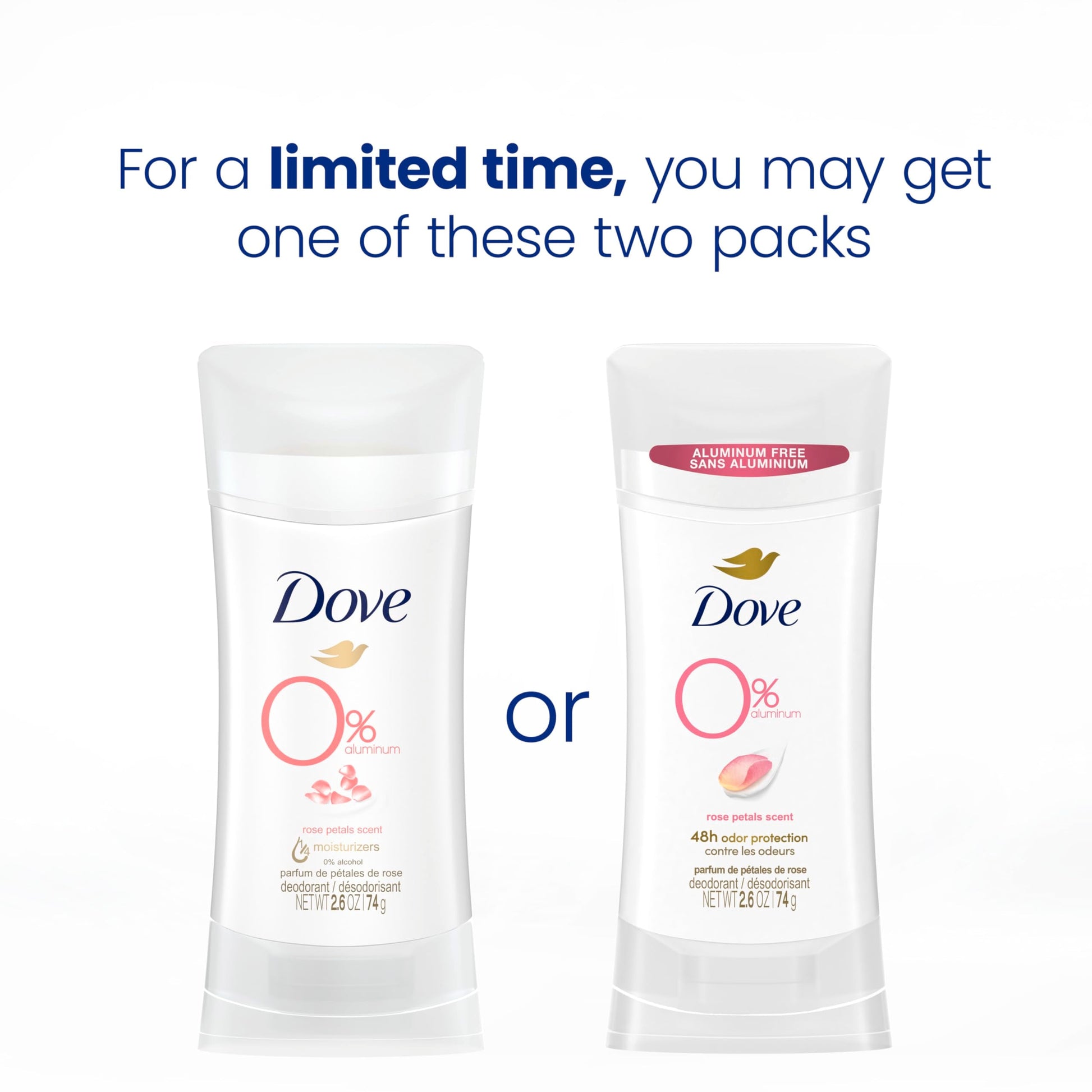 Dove 0% Aluminum Deodorant Stick Rose Petals 3 Count Non-irritating Deodorant for Underarm Care Kindest Aluminum Free Deodorant 2.6 oz