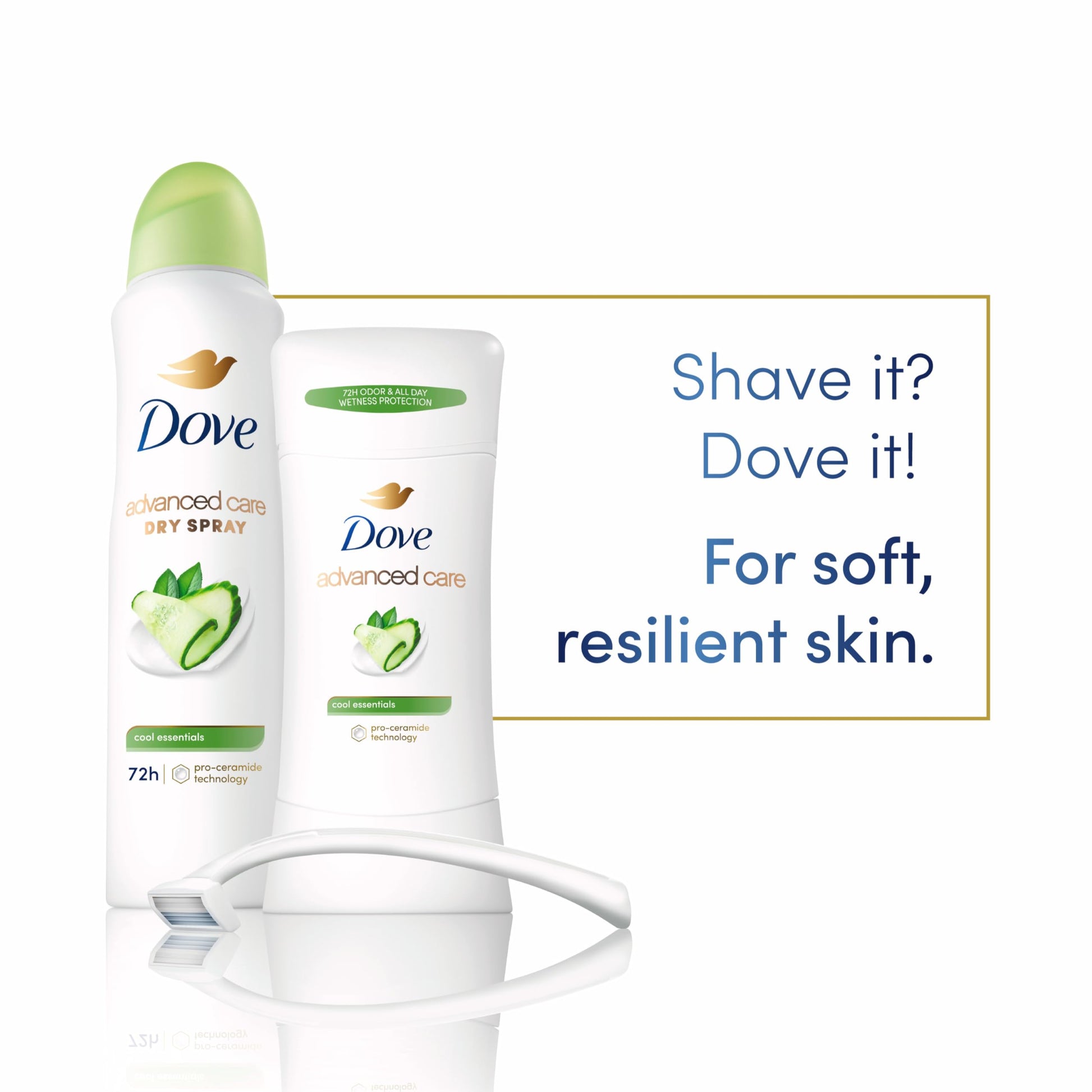 Details: Meet Dove Advanced Care Cool Essentials Antiperspirant Deodorant Stick, which works to help your skin barrier repair after shaving with every use, delivering soft, resilient underarms with every use If you love a fresh scented deodorant, try the juicy pear and crisp cucumber in this antiperspirant deodorant, to energize and uplift your senses throughout the day. When it comes to creating a self-care routine, your underarms deserve exceptional skin care. Dove Advanced Care antiperspirant deodorant range features innovative Pro-Ceramide Technology that boosts ceramide levels in your skin, which are essential for maintaining a strong skin barrier. This increase of ceramides helps your skin barrier repair and recover after shaving (especially as shaving can actually reduce ceramide levels in your skin). Using this kind-to-skin antiperspirant deodorant stick means underarms can benefit from better skin care and some well-deserved TLC, without letting any shaving worries get in the way. Did you know that when you shave of what you remove is skin? Cue Dove Advanced Care Cool Essentials Antiperspirant Deodorant Stick, infused with Pro Ceramide Technology to strengthen your skin barrier and help it recover from shaving symptoms, like dryness and redness. This antiperspirant deodorant provides 72-hour sweat and odor protection by quickly drying on your skin when you need it the most. Get ready to shave, apply anti perspirant deodorant and start the day with touchably soft skin. Hold one arm above your head and use the other to apply your antiperspirant deodorant, gliding it on in light circles. Repeat under the other arm. Remember to wait a few minutes before applying your antiperspirant deodorant stick after shaving* β the formula works best on cool, dry skin. Donβt just reserve your antiperspirant deodorant stick for the daytime β you can apply it before you go to bed, too.