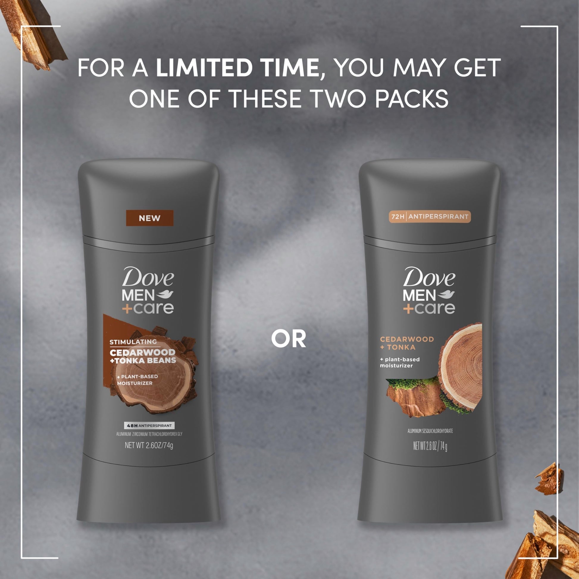- Want an antiperspirant that works in harmony with your skin and doesn’t need to be reapplied every few hours? Give your wellness routine a boost with our Dove Men+Care Cedarwood + Tonka Antiperspirant Stick.