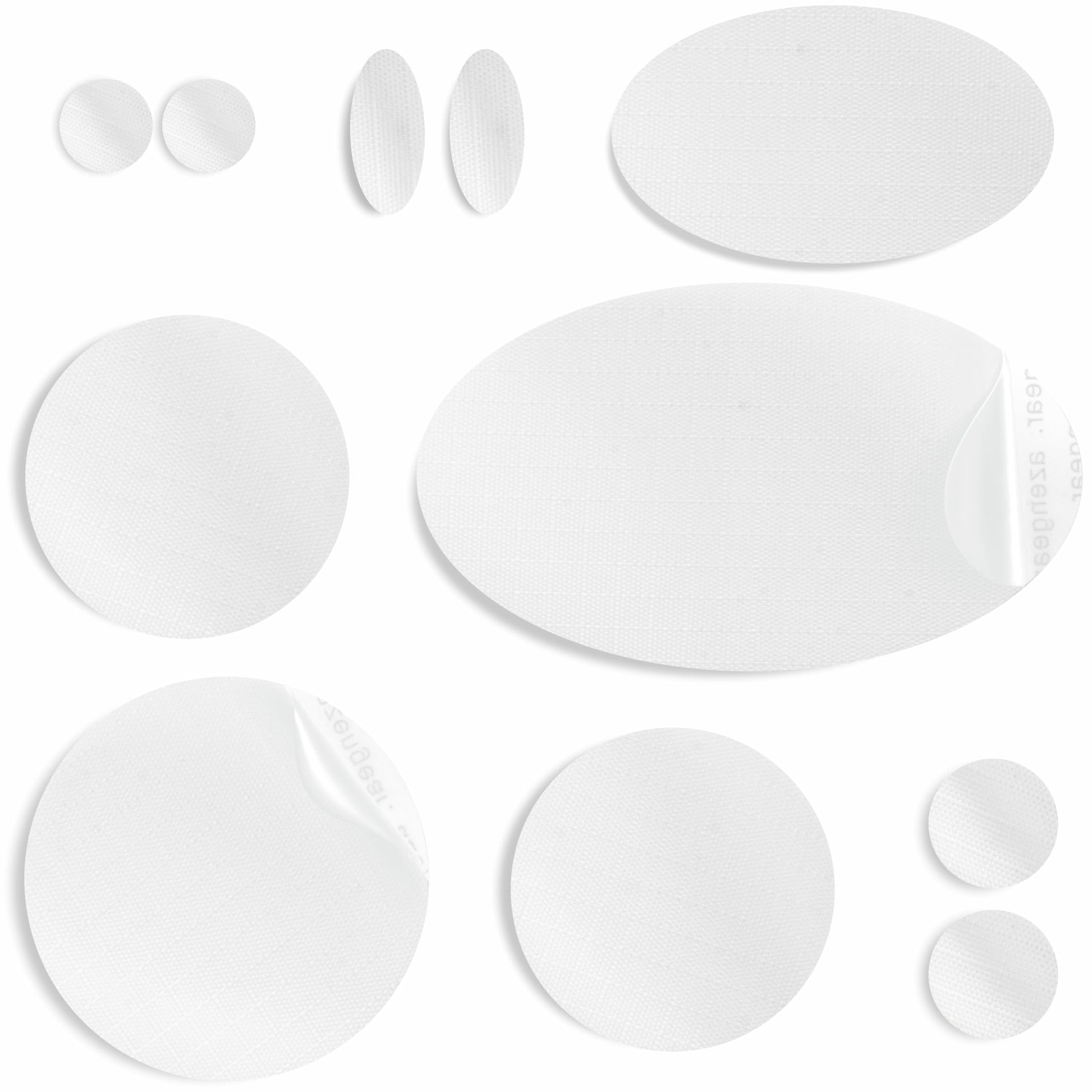 - 11 DIFFERENT SHAPES AND SIZES - each mending set includes 11 pre-cut, self-adhesive, high-quality, soft patches (1 oval 3.15x1.9in, 1 oval 1.18x1.96in, 2 ovals 0.4x0.78in each, 1 circle 1.96in diameter, 2 circles 1.57in, 2 circles 0.59in and 2 circles 0.4in)
