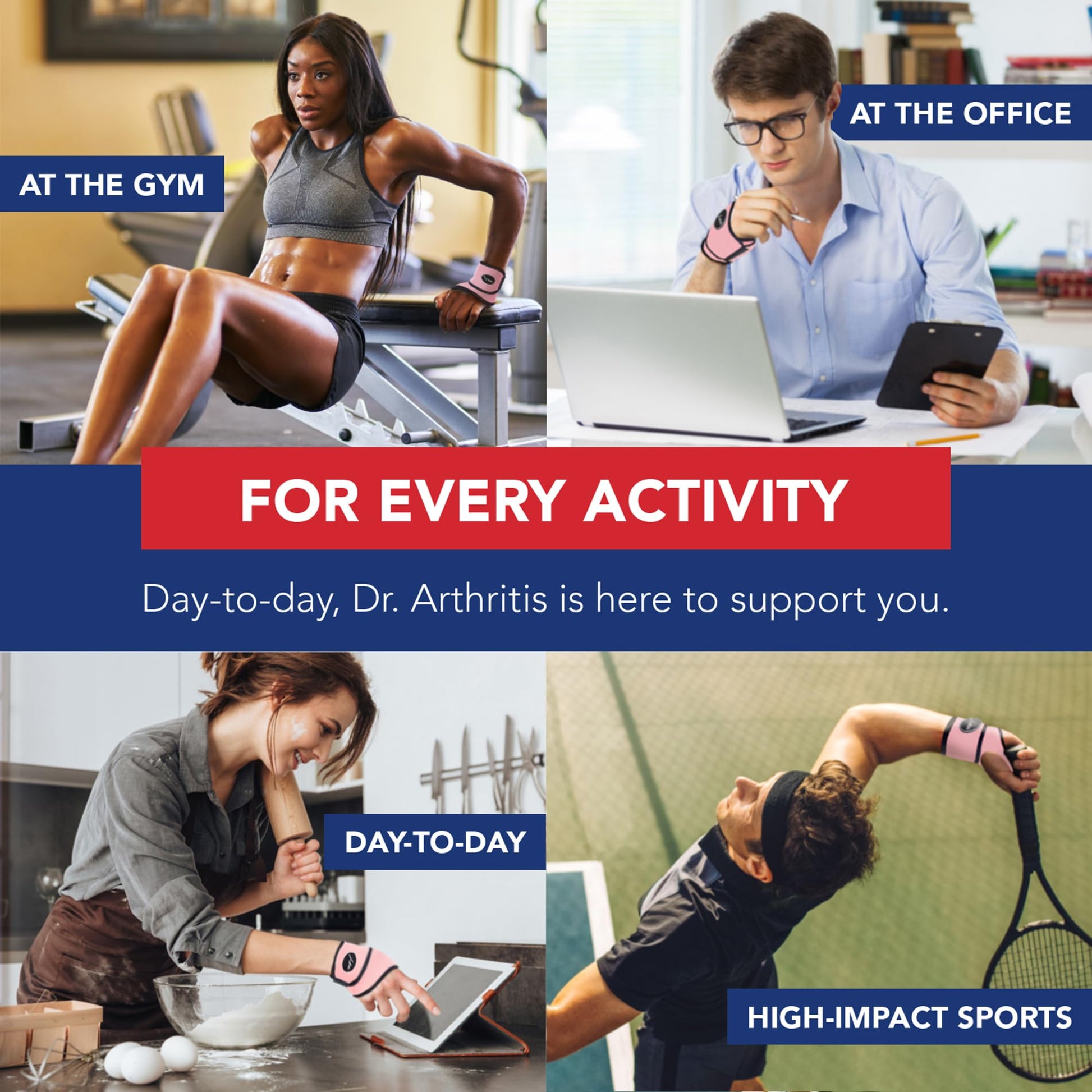 Dr. Arthritis Doctor Developed Premium Wrist Support/Strap/Wrist Brace/Hand Support Doctor Written Handbook— Wrist Injuries, Joint Disease, Sprains & More (Single, Pink)