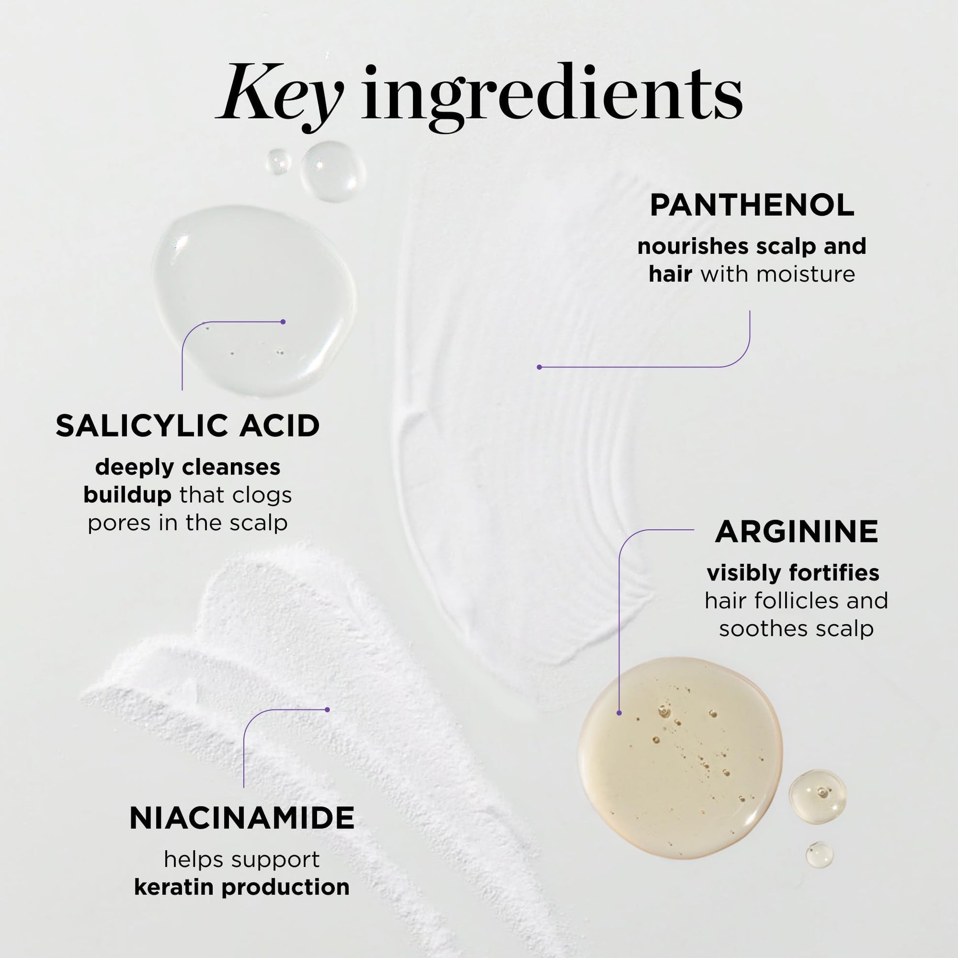 - EXFOLIATES, CLEANSES, AND MOISTURIZES THE SCALP, BOOSTING CIRCULATION AND ENCOURAGING HAIR GROWTH AND STRENGTH. Formulated with Salicylic Acid, Panthenol, Arginine, Niacinamide, and Rosemary Oil, it is formulated without parabens, silicones, sulfates and gluten.