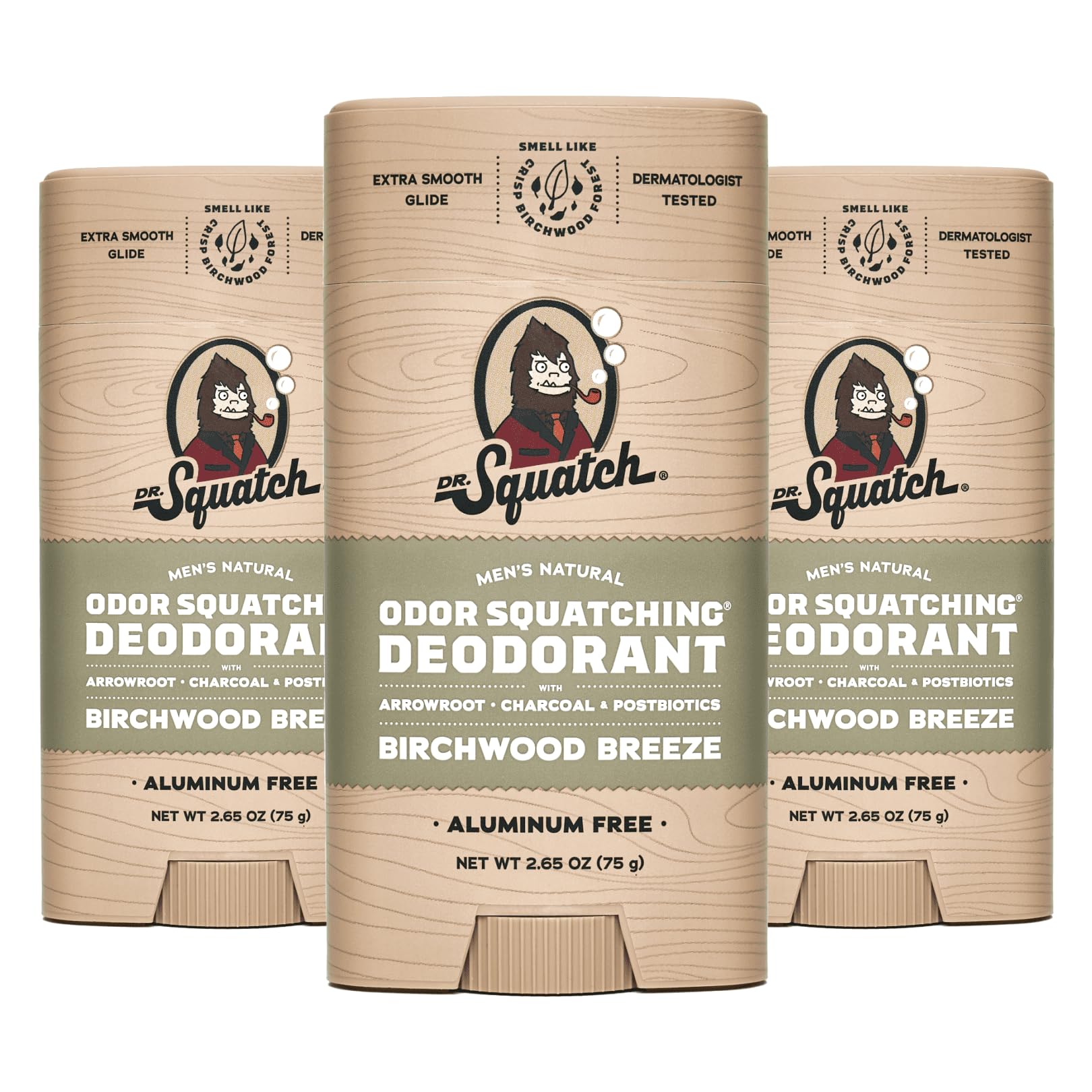 Dr. Squatch Natural Deodorant for Men 3 Pack Birchwood Breeze – Odor-Squatching Men's Deodorant Aluminum Free (2.65 oz, 3 Pack)