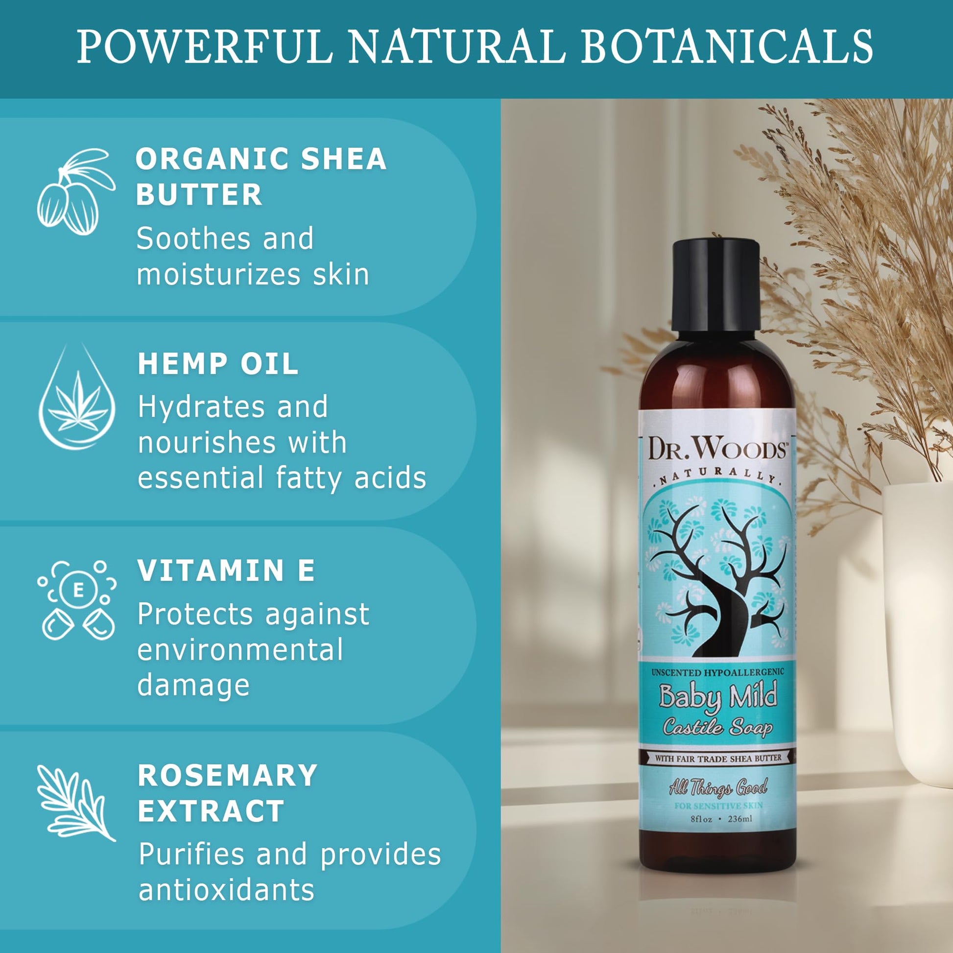 Dr. Woods Unscented Baby Mild Liquid Castile Soap with Organic Shea Butter, 8 Ounce