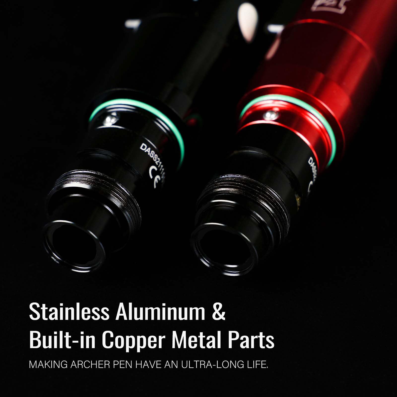 - 【HIGH DURABILITY】Archer Wireless Rotary Tattoo Machine Gun features Stainless Aluminum Alloy Frame And Built-In Copper Metal Parts, greatly improving durability of the motor, and achieving an ultra-long life. With an LCD screen, easily adjustable voltage, and a built-in timer, the Archer wireless tattoo machine gun provides ultimate control for tattoo artists.