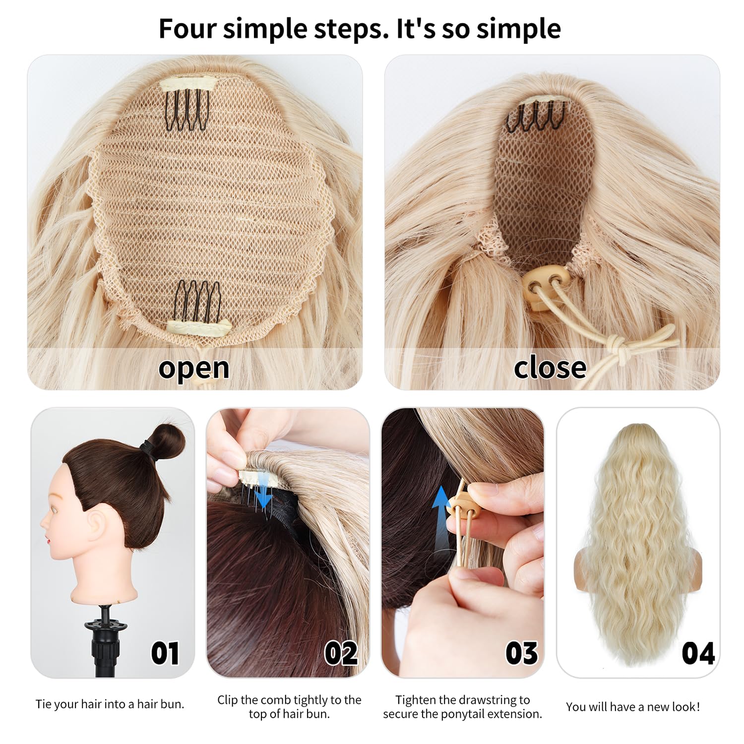 Drawstring Ponytail for Women, 26 inch Blonde Ponytail Extension, Synthetic Pony Tails Hair Extensions, Natural Clip in Ponytail Hair Extensions for Daily Use (Platinum Blonde with Golden Blonde)