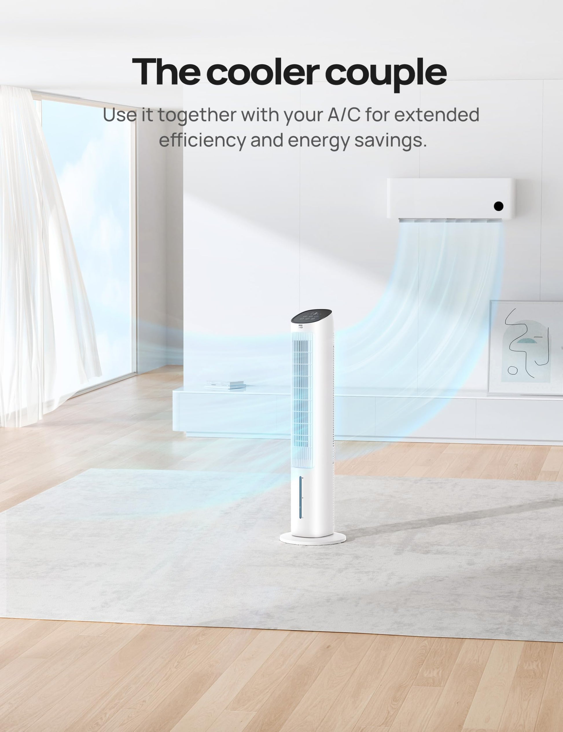 Dreo Evaporative Air Cooler, 40” Standing Fans that Blow Cold Air, 80° Oscillating Bladeless Cooling Fan for Bedroom, Swamp Cooler, Removable Water Tank, Ice Pack, Remote, 3 Mode 4-Speed, White