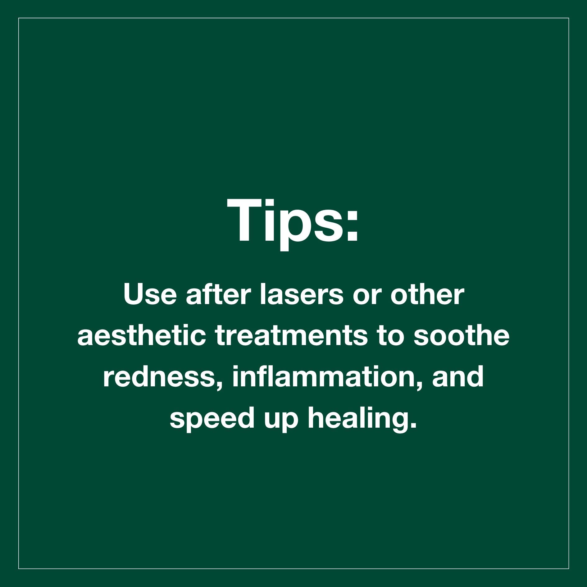 - Pro Tips: If you have extremely sensitive skin, use this in place of moisturiser to hydrate, calm skin down, and speed up healing.