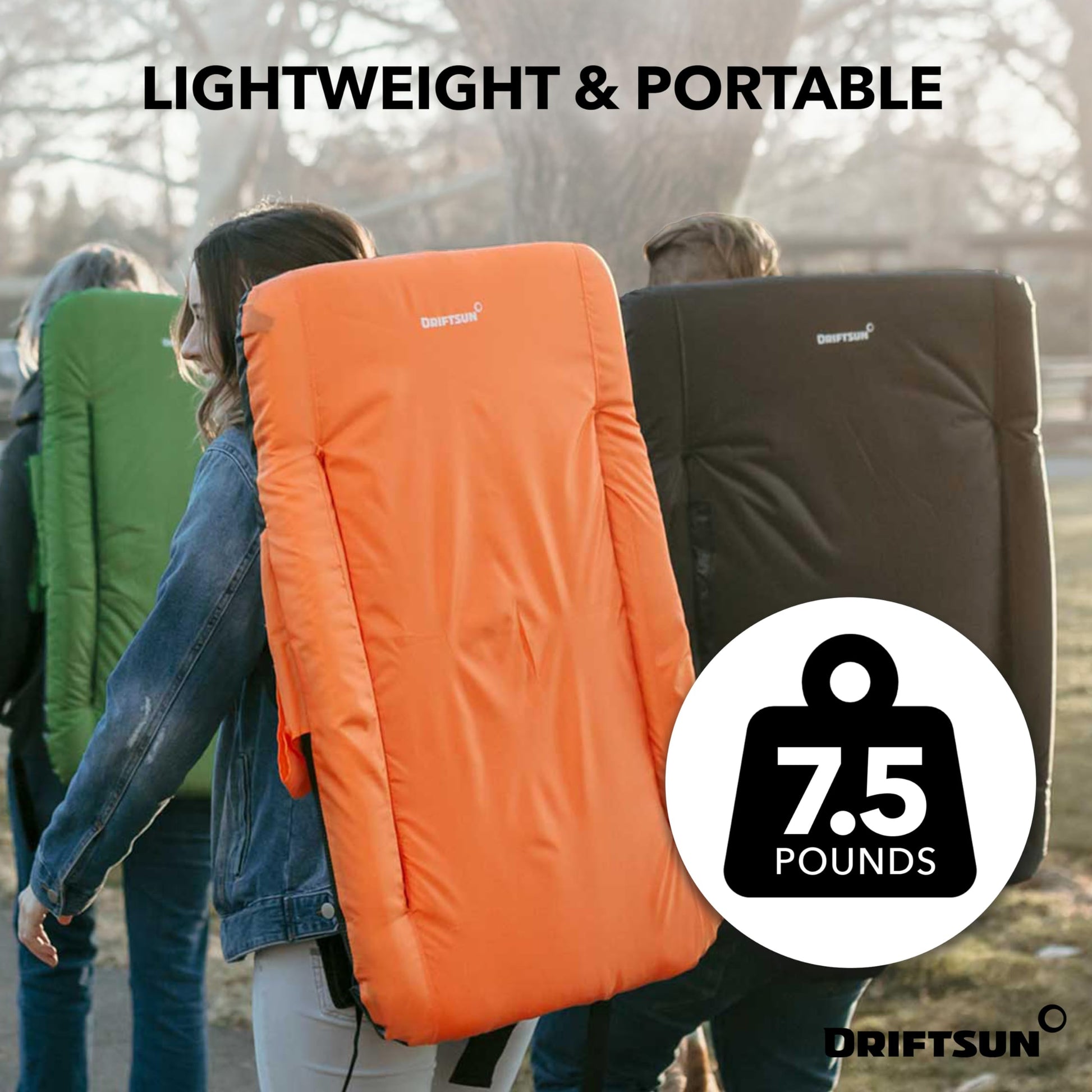 Details: We at Driftsun live for being outdoors. Our goal is to provide ultimate comfort and a great user experience for stadium sports fans everywhere. After spending countless hours in stadiums and bleachers we designed the ultimate solution, a portable reclining bleacher seat with a backrest, non-slip bottom, anchor strap, cup holder, and side/back pockets.
