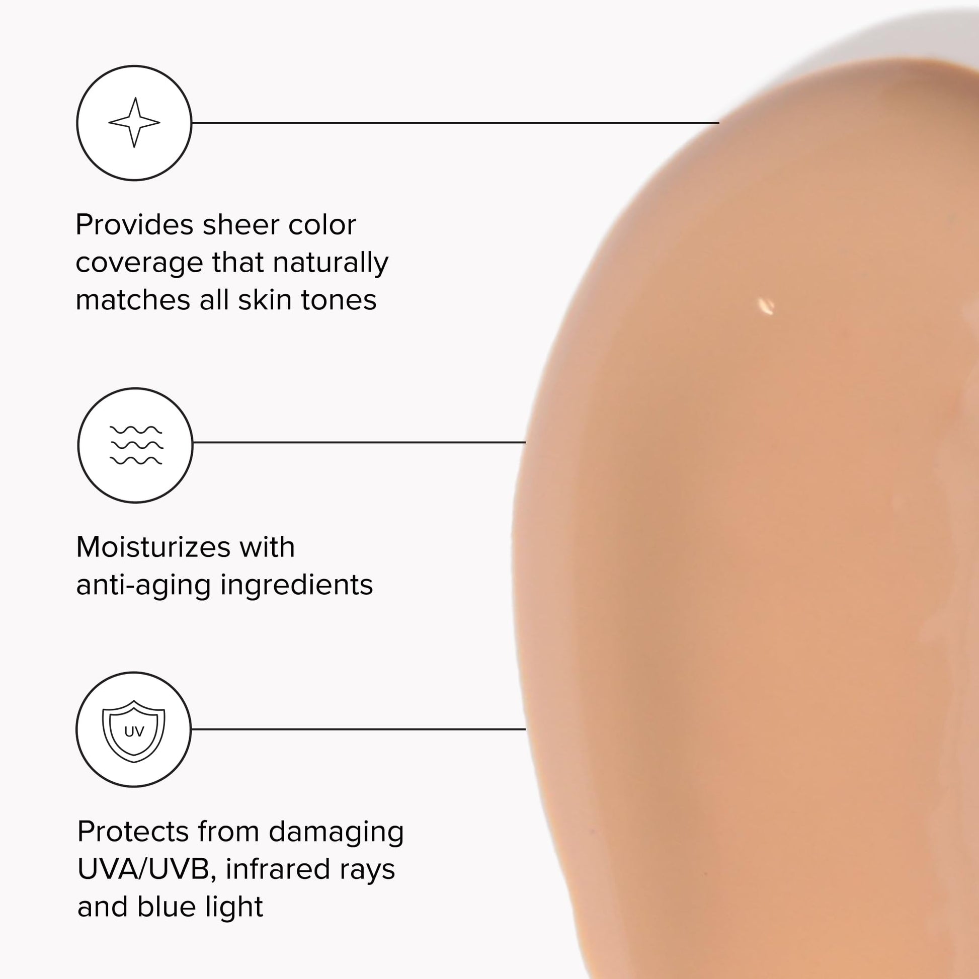 - FORMULATED AS AN ALL-IN ONE SUNSCREEN AND LIGHT SHEER COVERAGE that provides sheer color coverage, minimizes the appearance of fine lines and wrinkles, and blends naturally to match every skin tone.