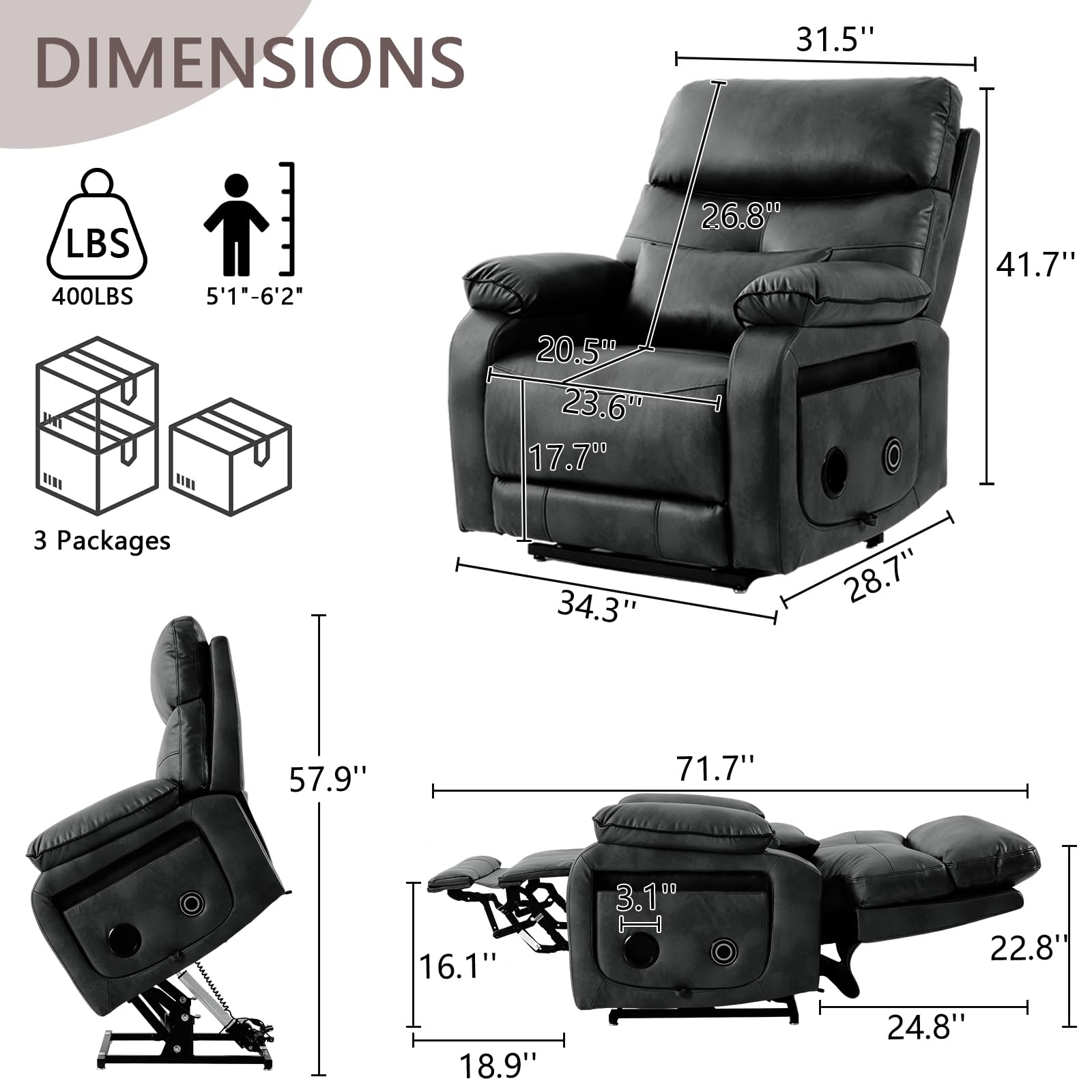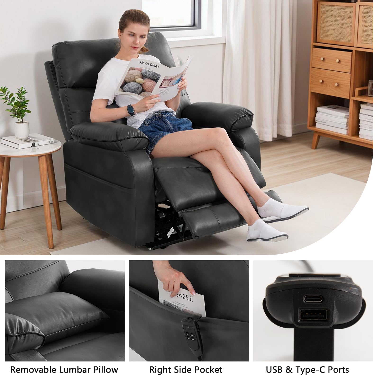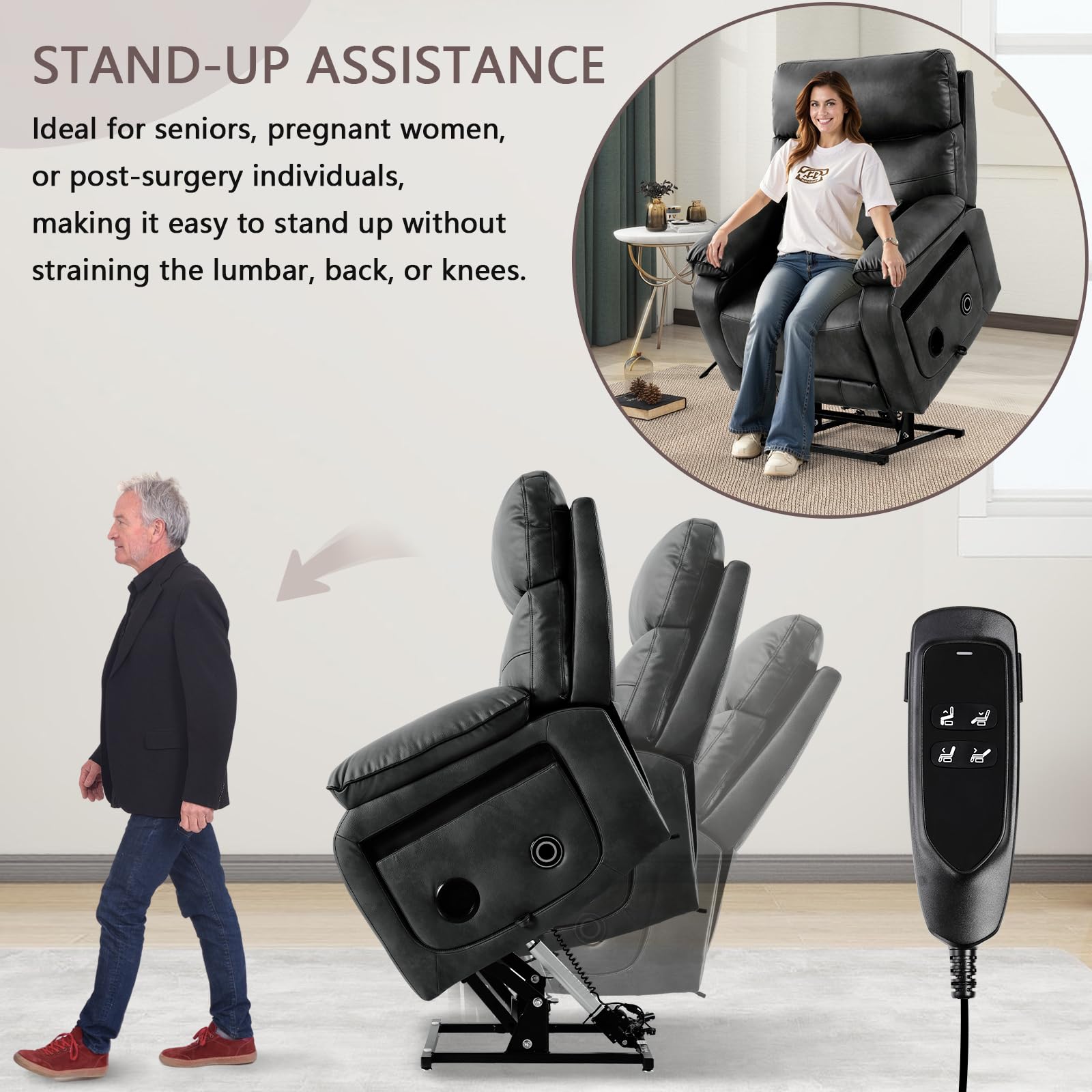 - 【High-Quality Materials】This power lift chair for elderly features soft, breathable leather that’s easy to clean, and high-density foam for long-lasting comfort. The sturdy iron and solid wood frame can support up to 400 lbs, with a formaldehyde-free wooden frame that meets CARB P2 standards, ensuring safety and durability for long-term use