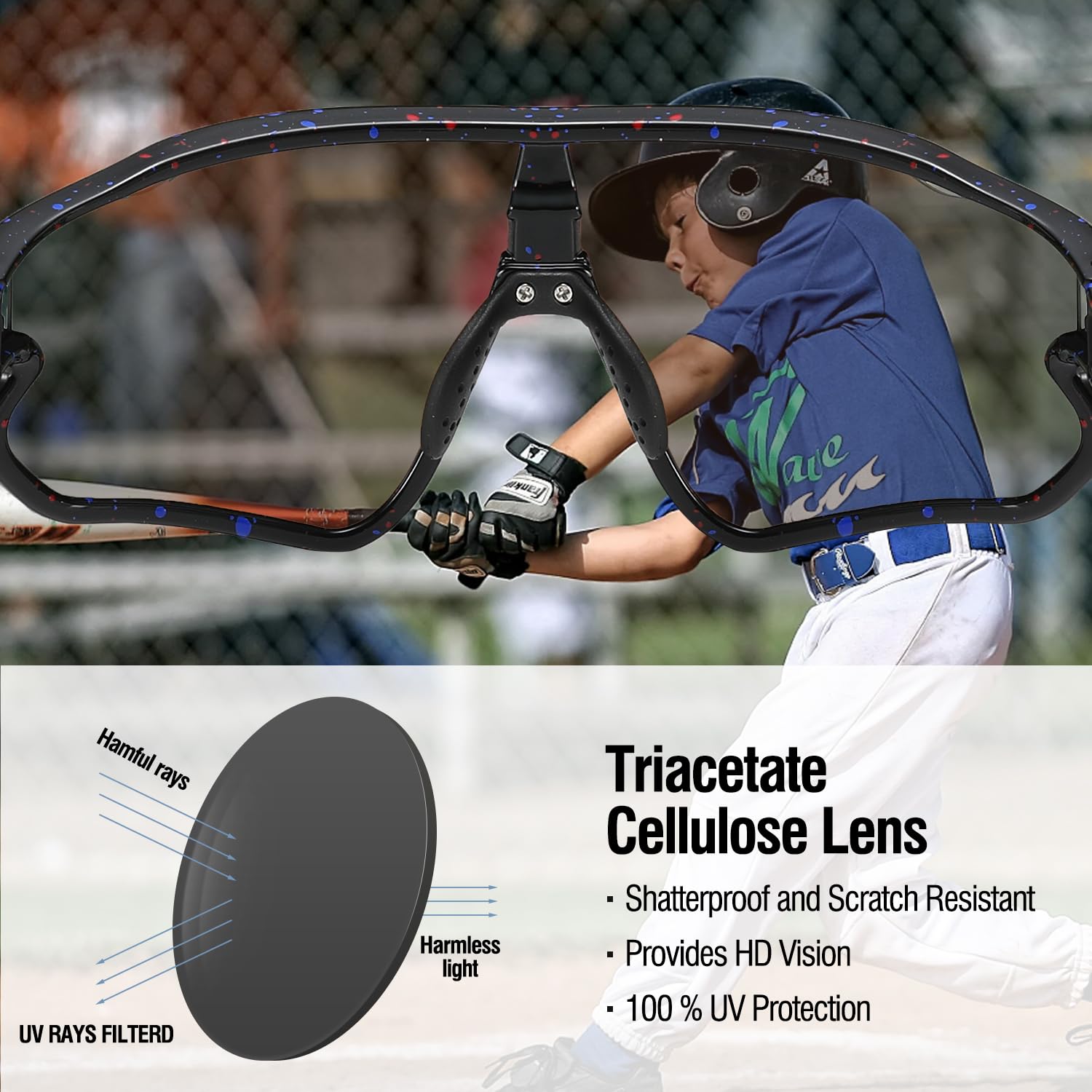 - 【DESIGNED FOR SPORTS】 -- These youth sports sunglasses offer 100% UV protection and clear vision,making them ideal for outdoor sports,such as baseball,softball,climbing,driving,fishing,golf,hiking,running skiing,cycling and so on.