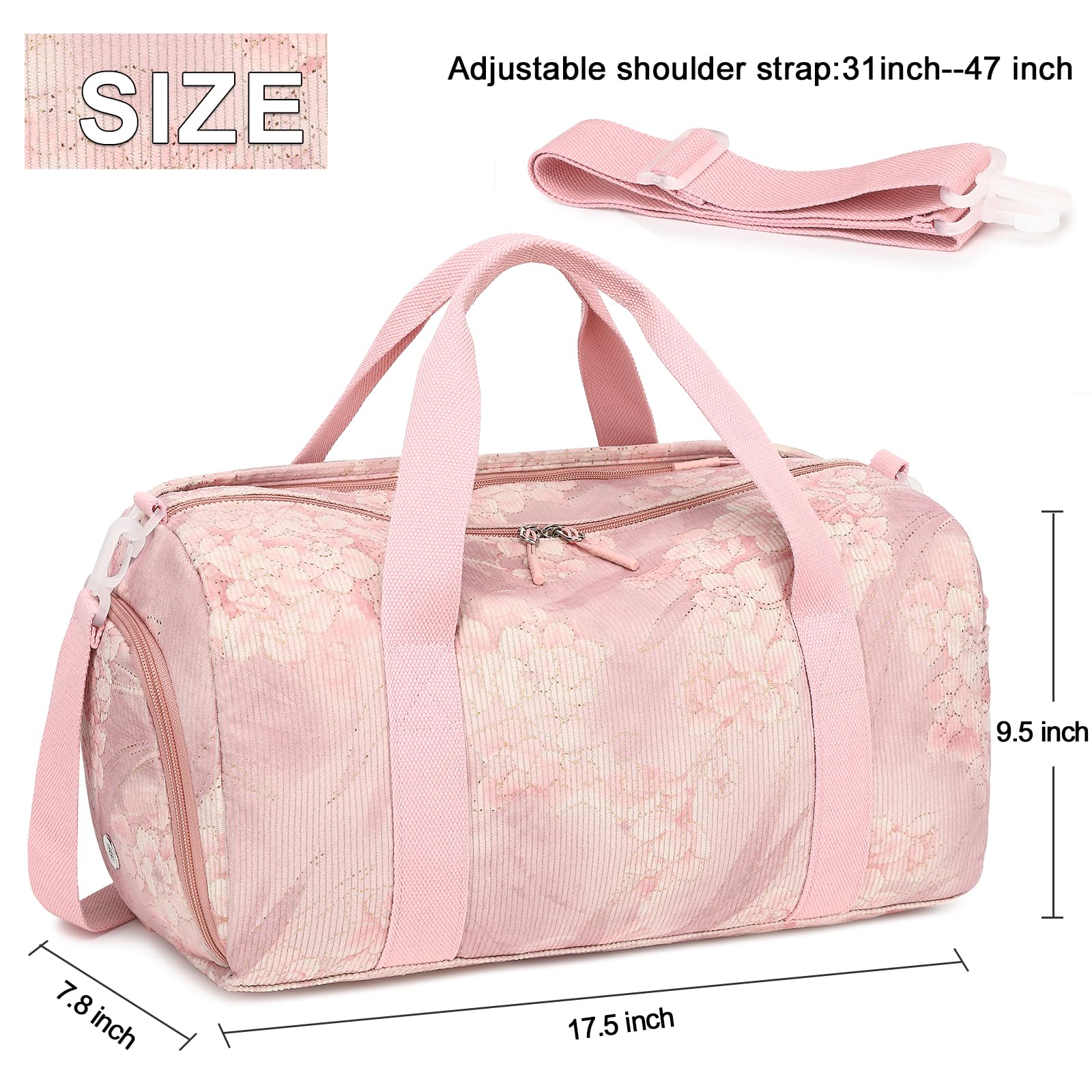 Duffle Bag for Gym Sports Women Girls Workout Travel Bag Weekender with Shoe Compartment and Wet Pocket (Floral Pink)