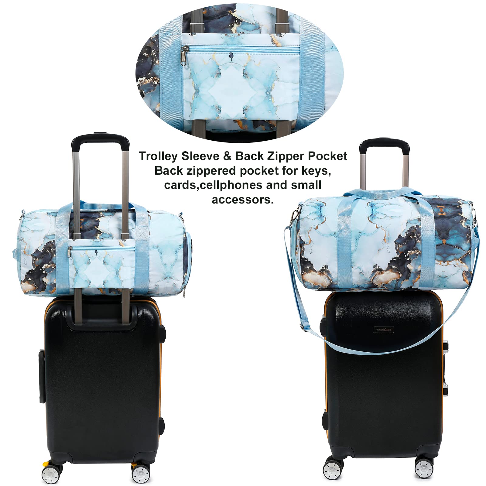 Duffle Bag for Gym Sports Women Girls Workout Travel Bag Weekender with Shoe Compartment and Wet Pocket (Marble 26- Blue)