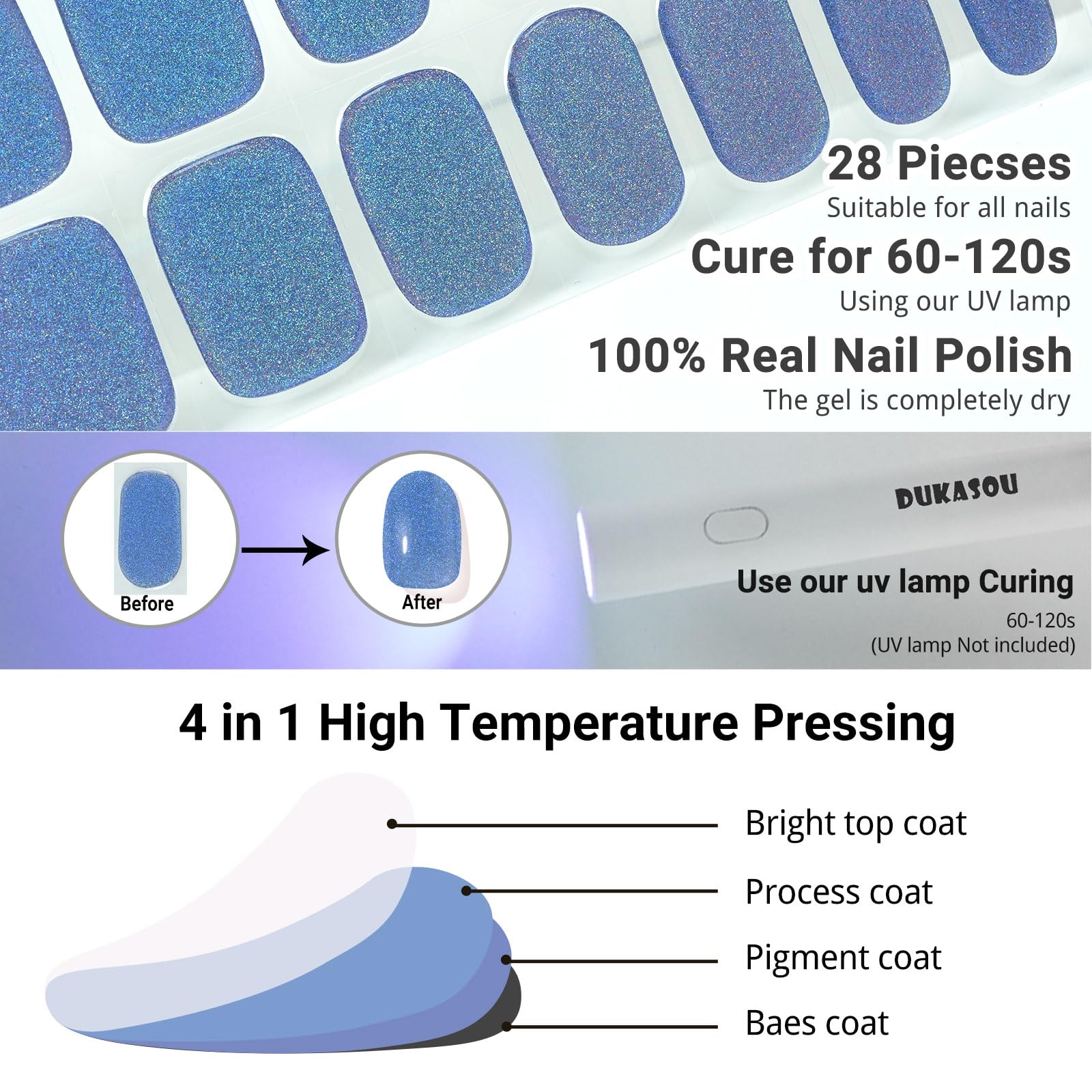 - DUKASOU Guaranteed: DUKASOU provide pre-sales and after-sales service.If you encounter any problems with DUKASOU gel nail strips products, please feel free to reach out us, and we will solve the problem for you