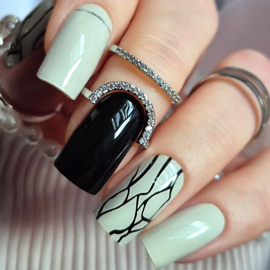 DUKASOU Semi Cured Gel Nail Strips, Ink Room | 28 pcs Gel Nail Strips Work with Any UV Lamp, Salon Quality Nail Polish Art Stickers, Include Prep Pads, Nail File&Wood Stick