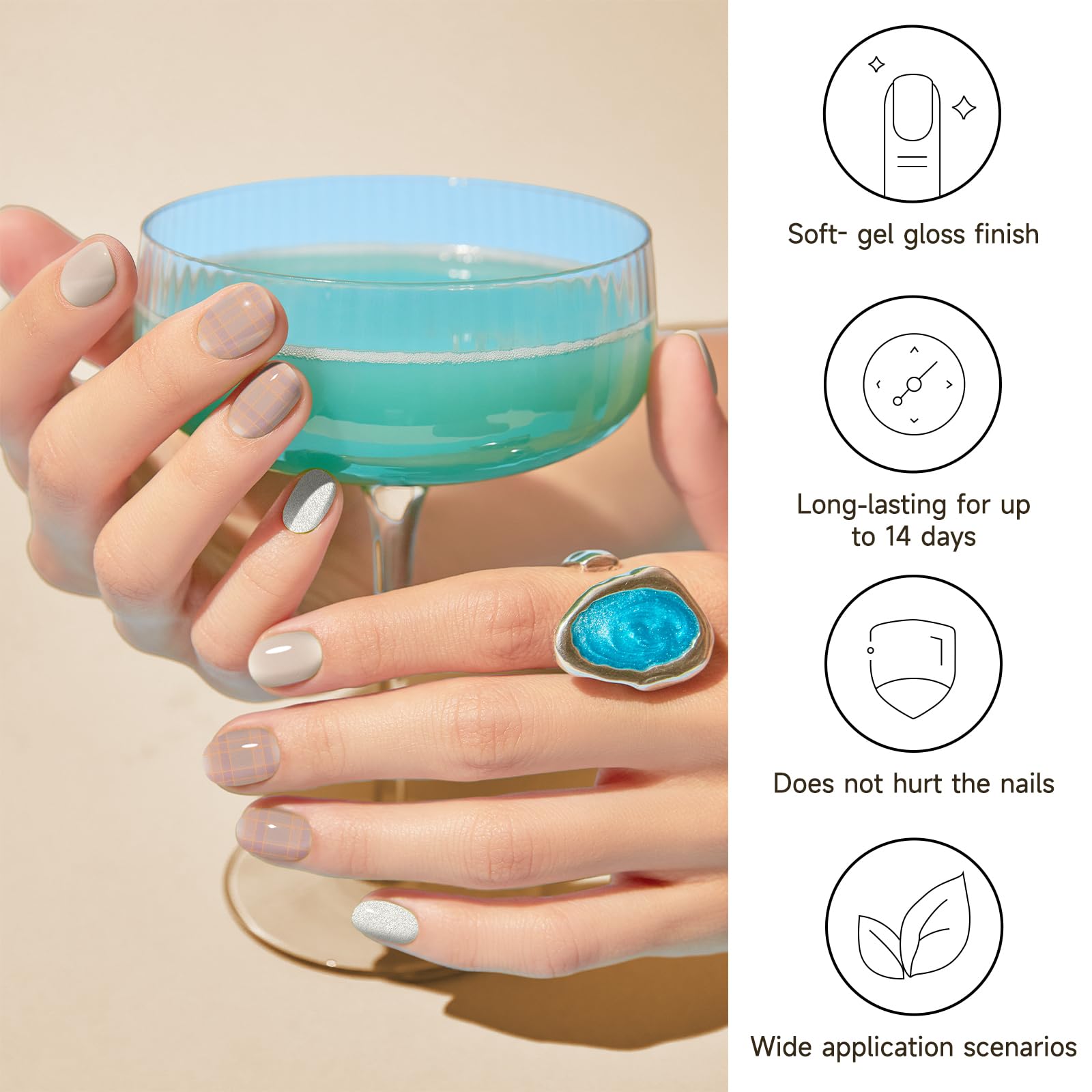 - Material & advantages introduction: Our gel nail strips are pre-cured 60%, nail stickers for nail art is made of real gel nail polish, with elasticity and luster, durable, can last for two Week, harmless, safe and odorless, very skin-friendly