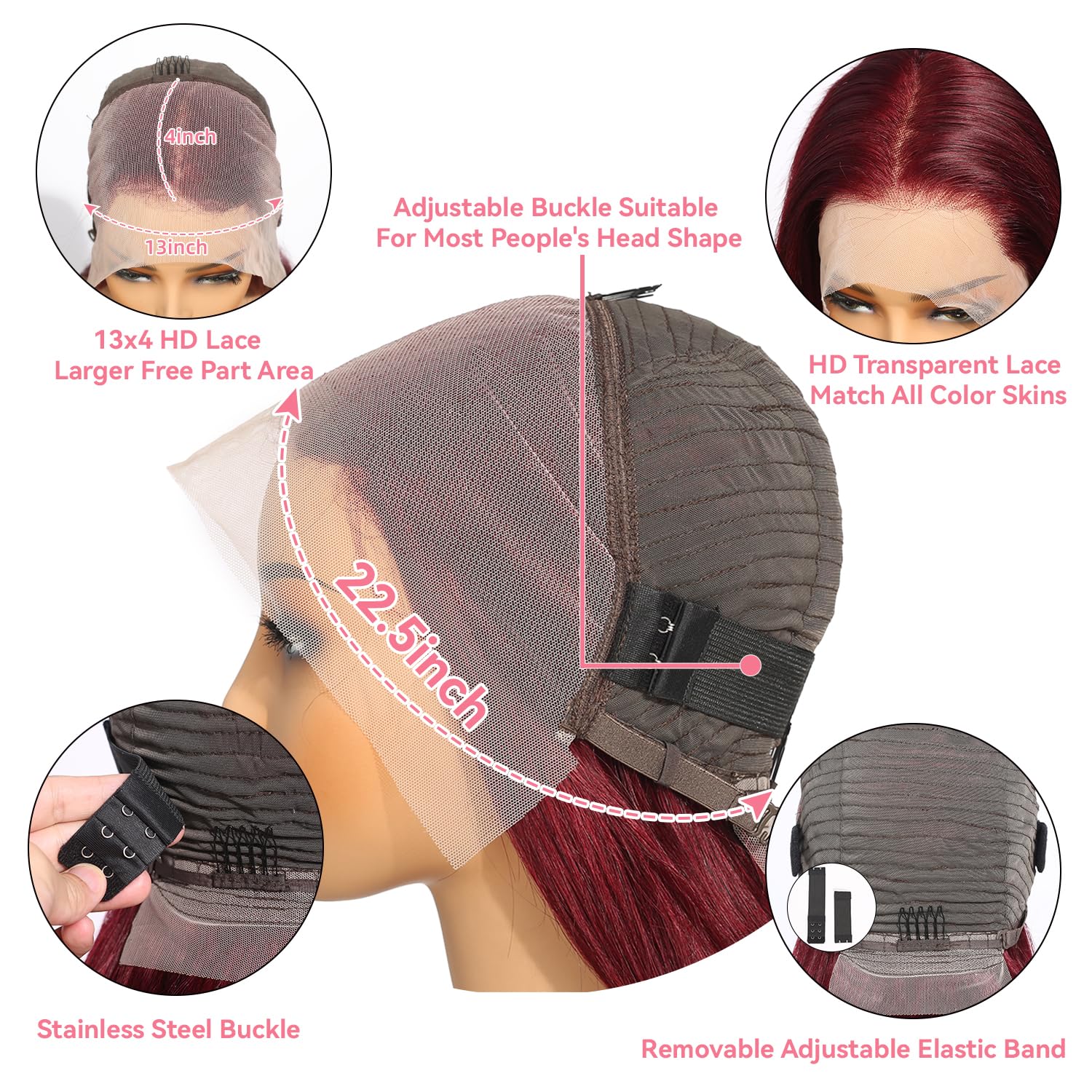 - 【99J Red Colored Lace Wig Cap Size&Length】Glueless Installation With 4 Combs And Adjustable Straps Inside, Sturdy And Adjustable To Fit Most Women's Head Size (21.5-22.5 Inch). Comfortable Wearing Experience As The Cap Is Made From A Soft, Breathable And Stretchy Material.