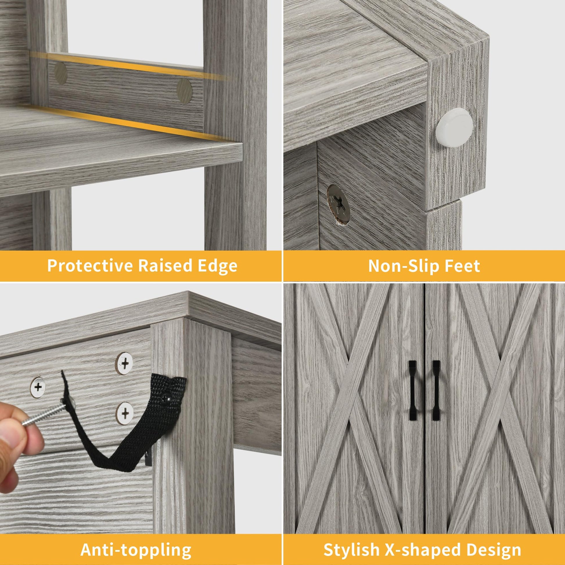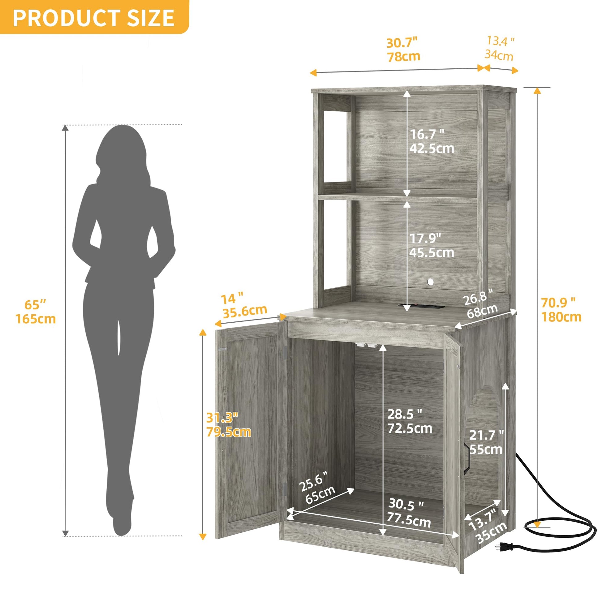 DWVO Large Hidden Litter Box Furniture with Shelves and Charging Station, Wooden Enclosure for Self-Cleaning Litter Boxes, Grey