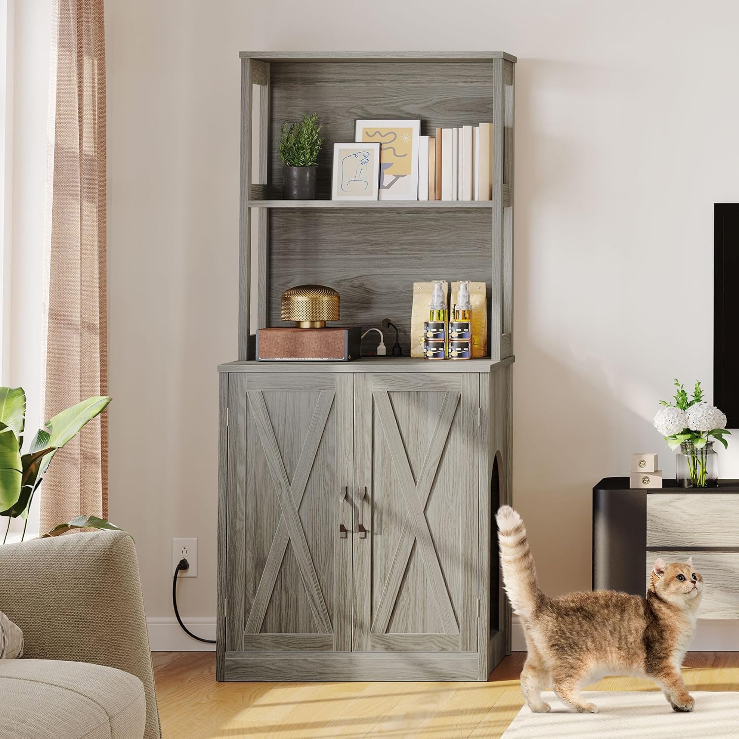 - Multifunctional cat furniture: More than a hidden litter box, this versatile cat cabinet with storage also functions as a bookshelf or storage cabinet with charging station, tidying up your living room, bedroom, etc elegantly