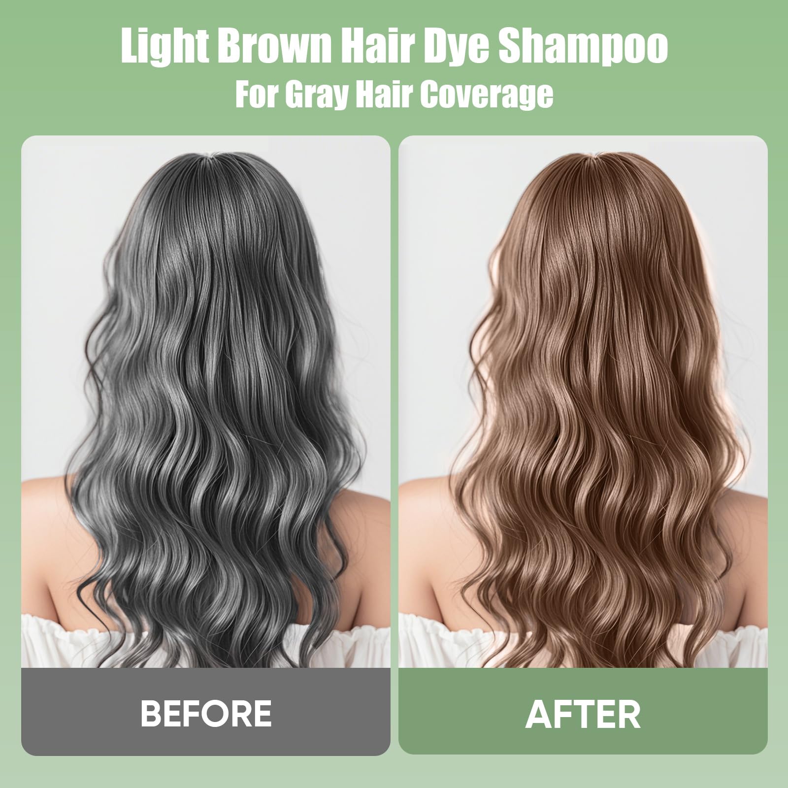 - 100% Gray Coverage: Wave goodbye to stubborn grays! Our light brown hair dye shampoo delivers full coverage in just 10–15 minutes, restoring your hair’s youthful shine and confidence. No more salon trips—just salon-worthy results!