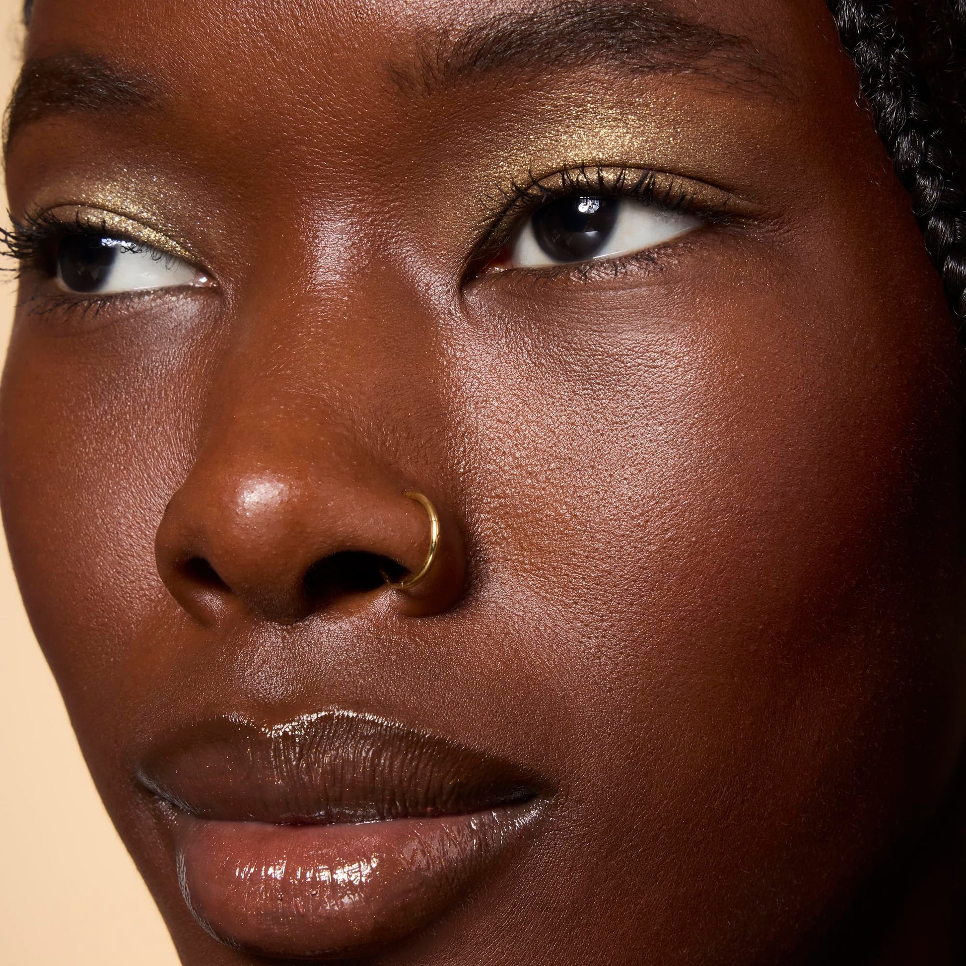 Long-lasting sheer glitter eyeshadow topper with a shimmer finish