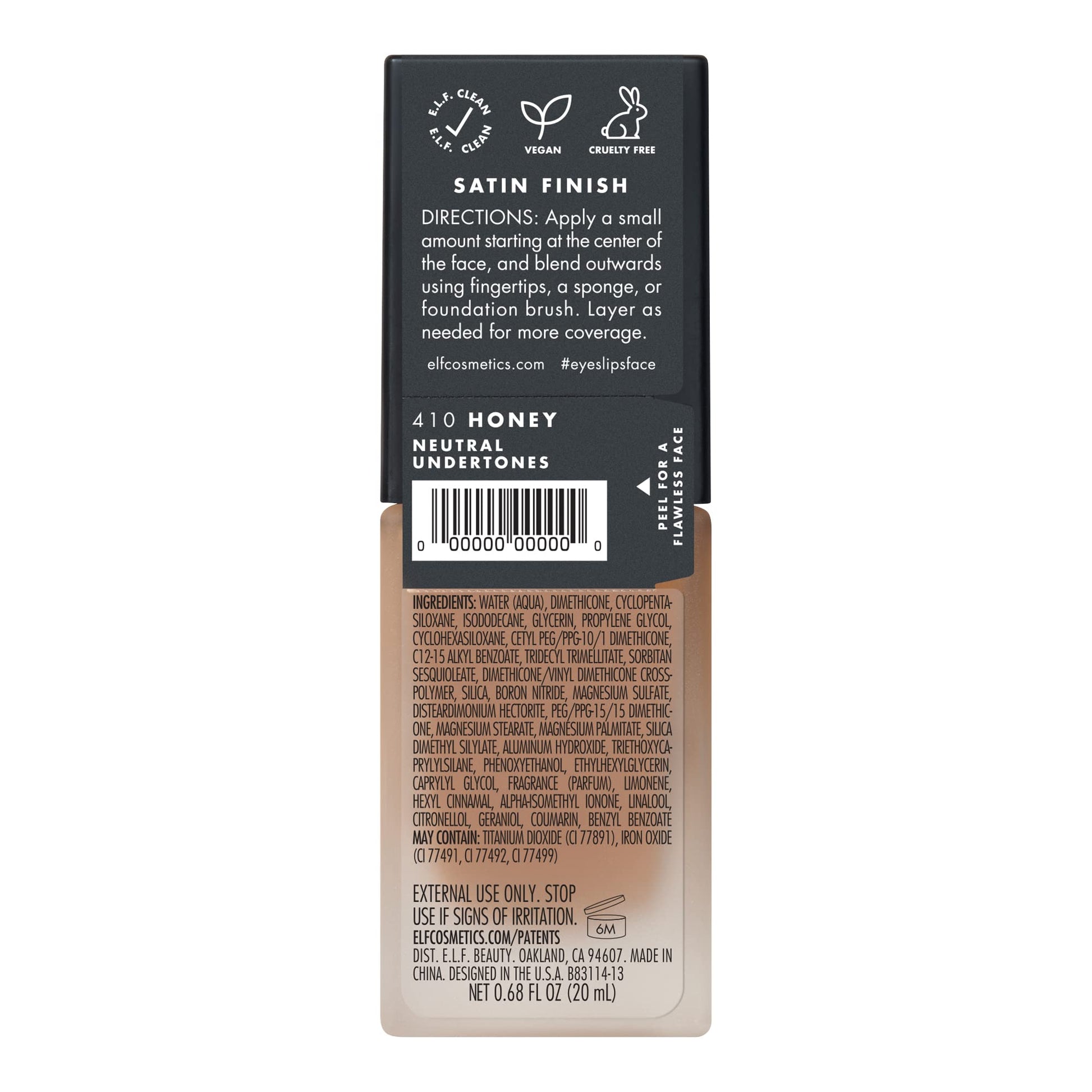 e.l.f. Flawless Satin Foundation, Lightweight & Medium Coverage, Semi-Matte Finish, Vegan & Cruelty-Free, Honey, 0.68 Fl Oz (20mL)