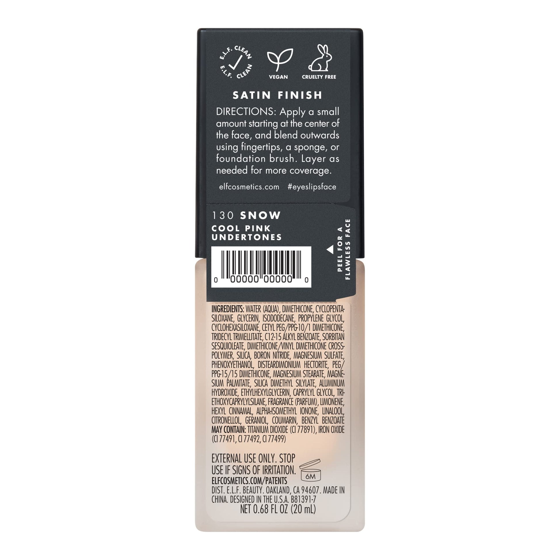 e.l.f. Flawless Satin Foundation, Lightweight & Medium Coverage, Semi-Matte Finish, Vegan & Cruelty-Free, Snow, 0.68 Fl Oz (20mL)