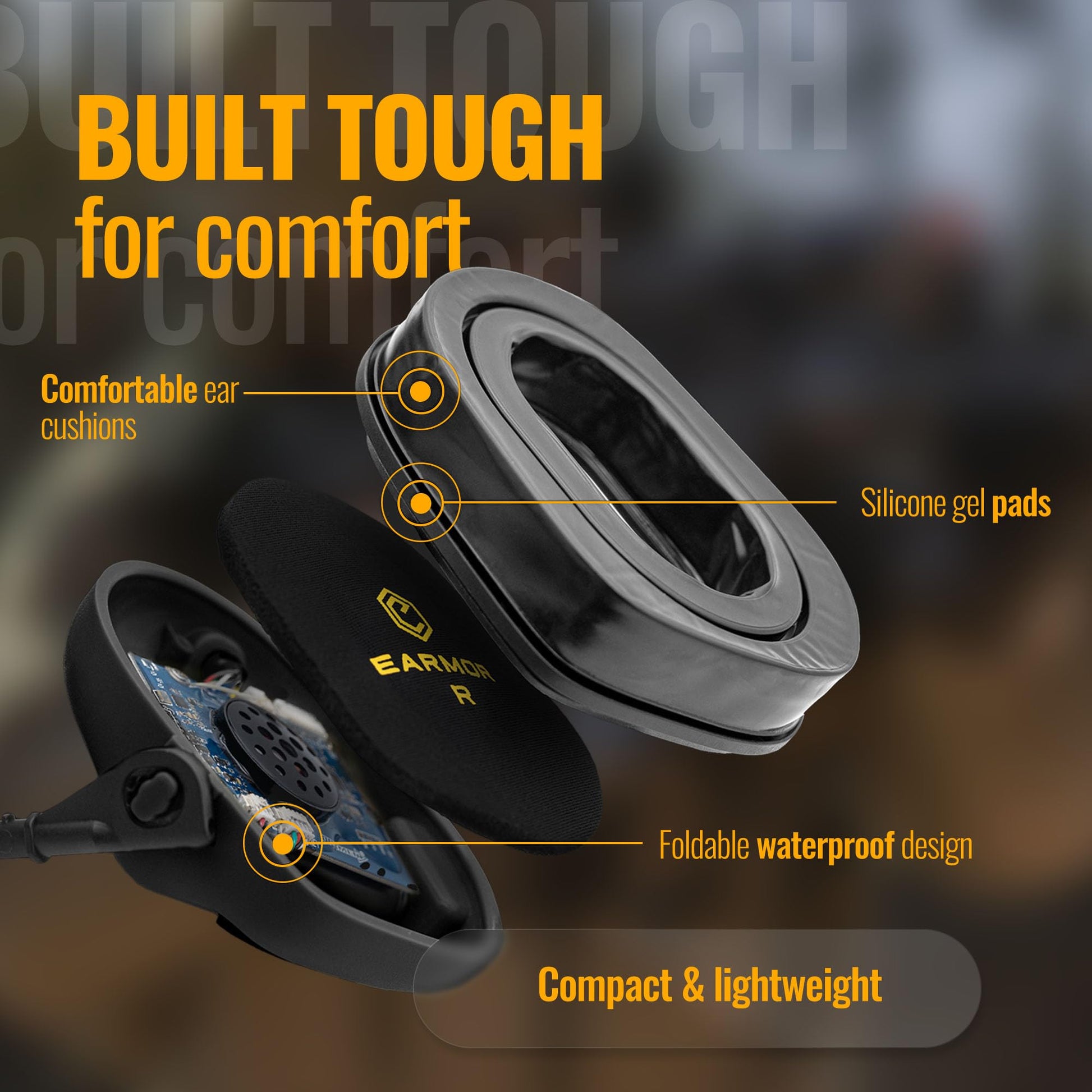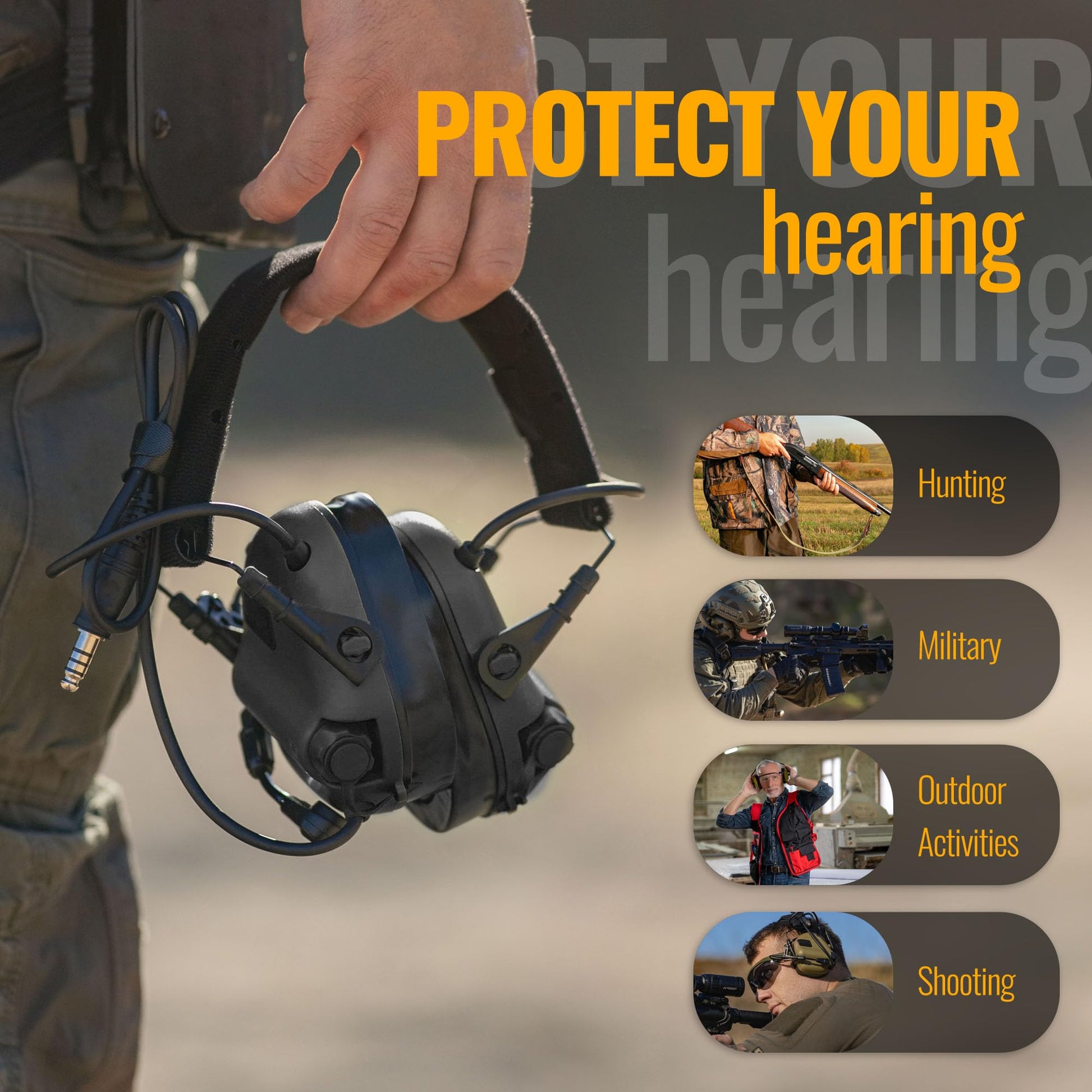 - Durable & Versatile - Built to withstand rigorous use, this tactical headset is your perfect companion for shooting practice, hunting, military games, and more. Its IPX-5 waterproof rating ensures it performs in all conditions.