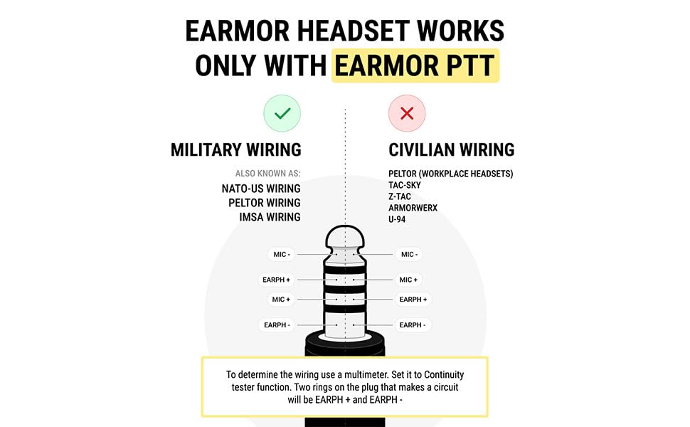 - Important note - this device includes military connection capabilities. Military connector is not suitable for element or z-tactical ptts. Please use earmor ptts