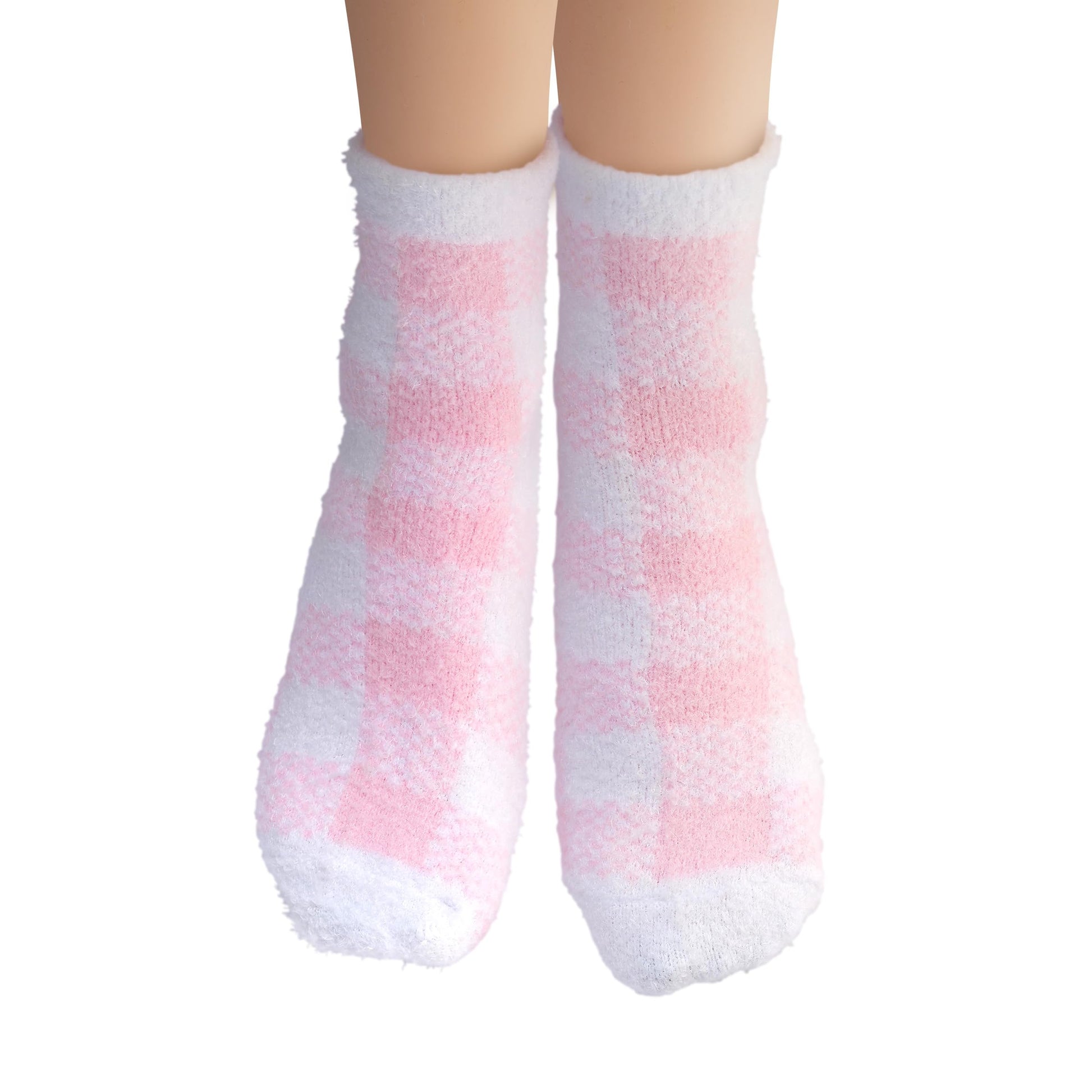 Aloe Moisture Socks by Earth Therapeutics, 2 Pack: Pink Plaid, Infused with Natural Aloe Vera & Vitamin E